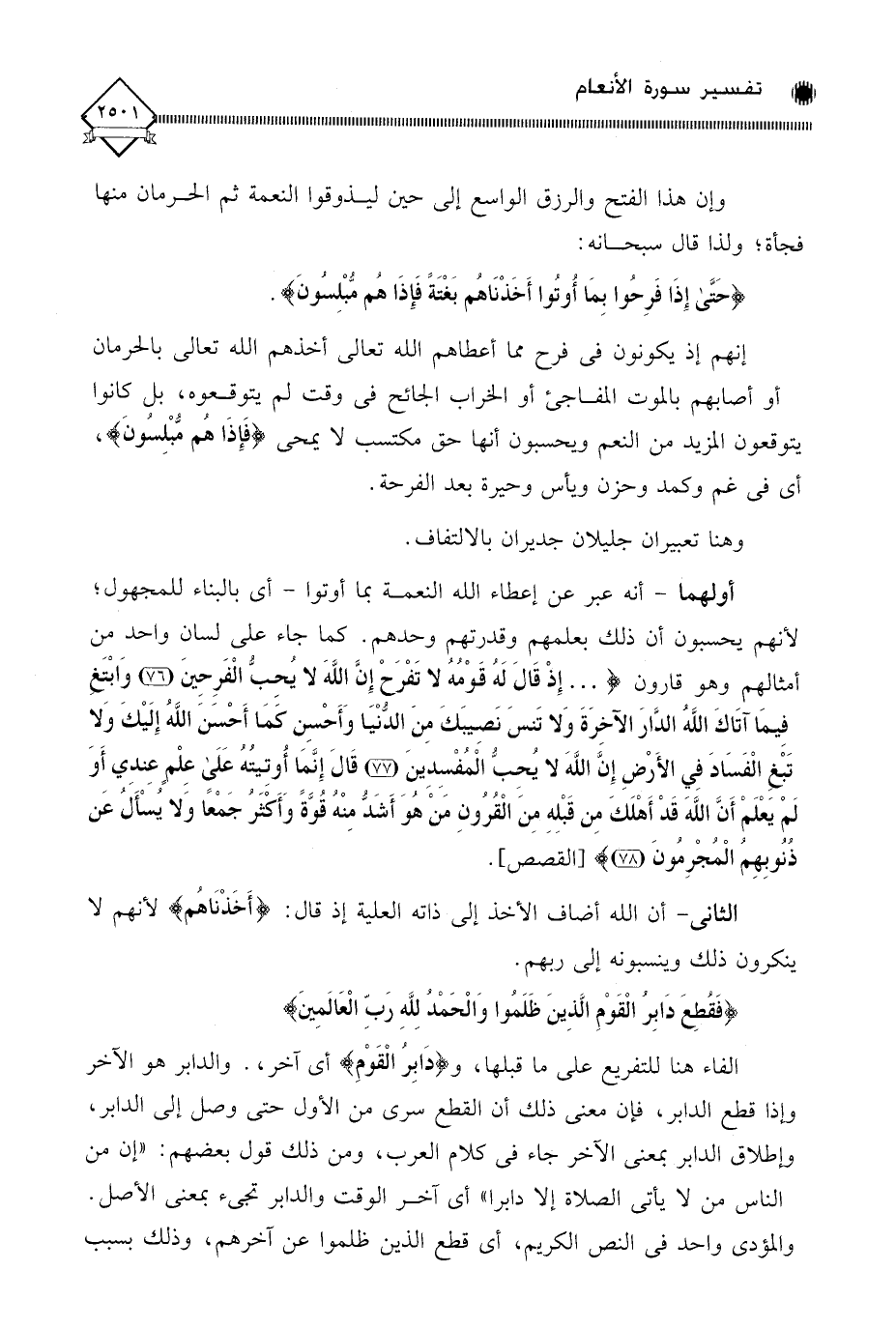 إنهم إذ يكونون في فرح مما أعطاهم الله تعالى أخذهم الله تعالى بالحرمان أو أصابهم بالموت المفاجئ أو الخراب الجائح في وقت لم يتوقعوه، بل كانوا يتوقعون المزيد من النعم ويحسبون أنها حق مكتسب لَا يمحى (فَإِذَا هُم مُّبْلِسُونَ)، أي في غم وكمد وحزن ويأس وحيرة بعد الفرحة.