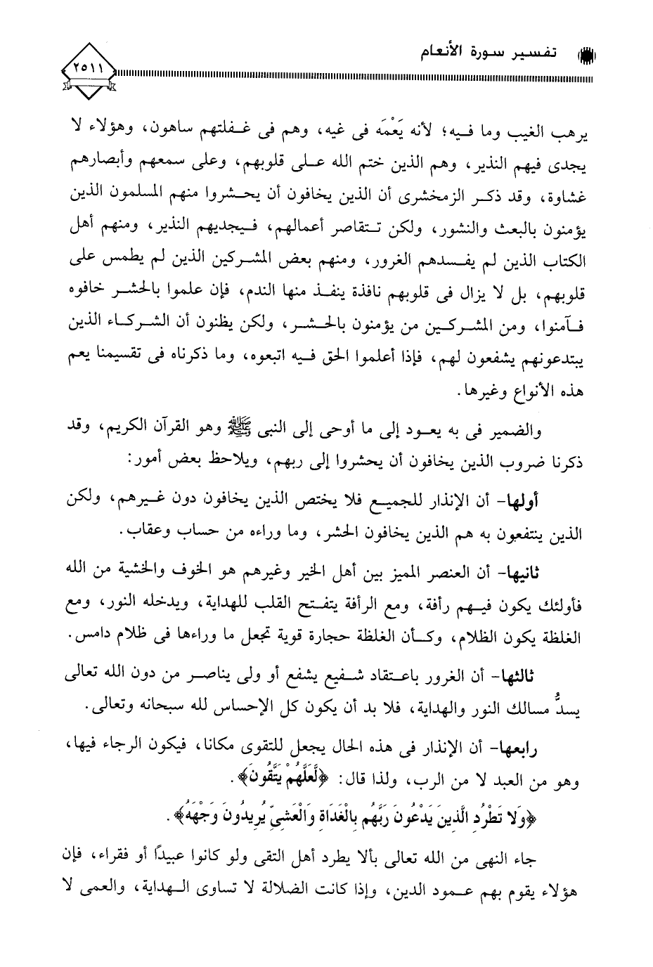 (وَلَا تَطْرُدِ الَّذِينَ يَدْعُونَ رَبَّهُمْ بِالْغَدَاةِ وَالْعَشِيِّ يُرِيدُونَ وَجْهَهُ ... (52)