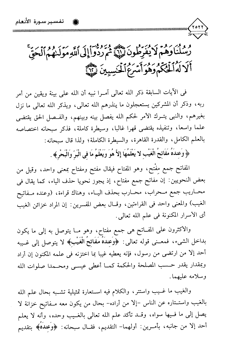 رُسُلُنَا وَهُمْ لَا يُفَرِّطُونَ (61) ثُمَّ رُدُّوا إِلَى اللَّهِ مَوْلَاهُمُ الْحَقِّ أَلَا لَهُ الْحُكْمُ وَهُوَ أَسْرَعُ الْحَاسِبِينَ (62)
