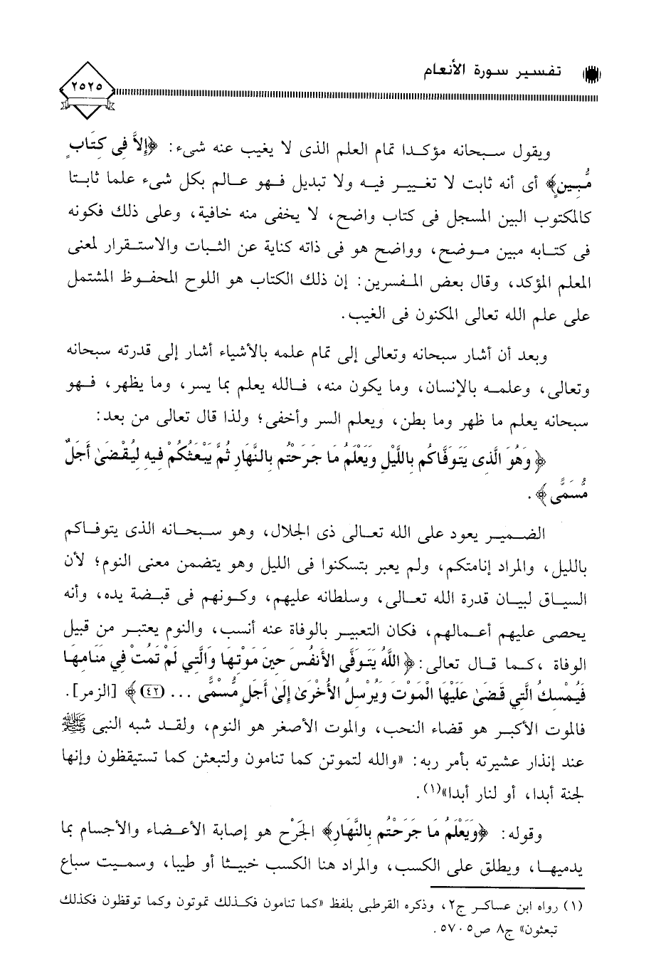 (وَهُوَ الَّذِي يَتَوَفَّاكُمْ بِاللَّيْلِ وَيَعْلَمُ مَا جَرَحْتُمْ بِالنَّهَارِ ثُمَّ يَبْعَثُكُمْ فِيهِ لِيُقْضَى أَجَلٌ مُسَمًّى ... (60)