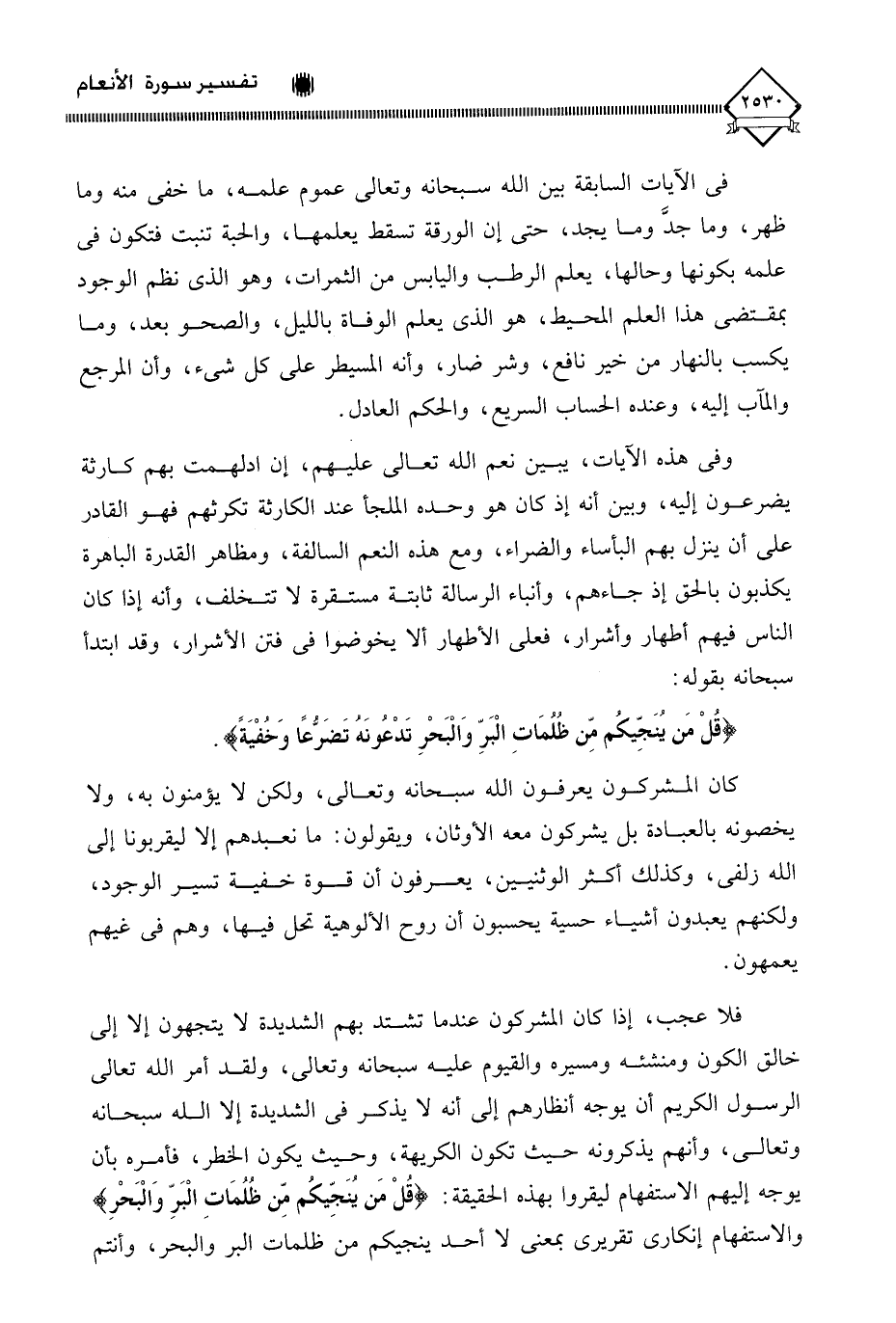(قُلْ مَن يُنَجِّيكُم مِّن ظُلُمَاتِ الْبَرِّ وَالْبَحْرِ تَدْعُونَهُ تَضرُّعًا وَخُفْيَةً).