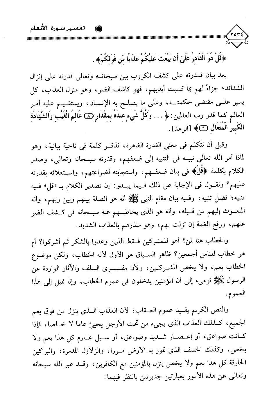 (قُلْ هُوَ الْقَادِرُ عَلَى أَنْ يَبْعَثَ عَلَيْكُمْ عَذَابًا مِنْ فَوْقِكُمْ ... (65)