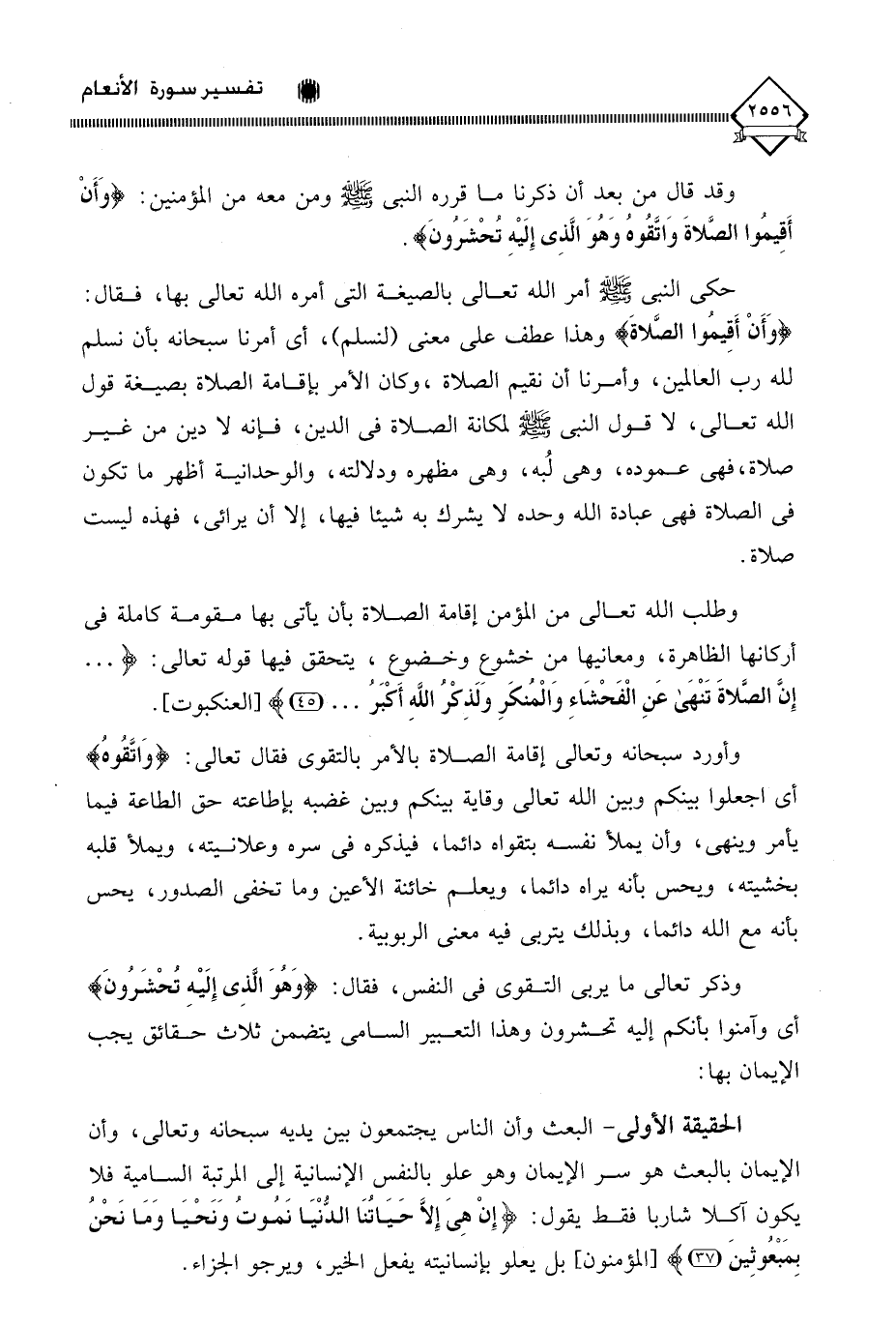 (وَأَنْ أَقِيمُوا الصَّلَاةَ وَاتَّقُوهُ وَهُوَ الَّذِي إِلَيْهِ تُحْشَرُونَ (72)
