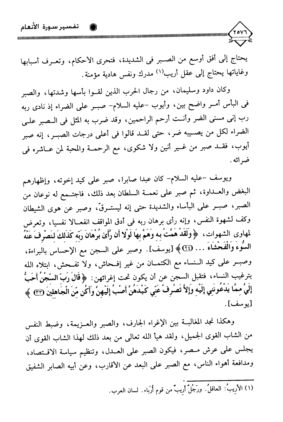 يحتاج إلى أفق أوسع من الصبر في الشديدة، فتحري الأحكام، وتعرف أسبابها وغاياتها يحتاج إلى عقل أريب (¬1) مدرك ونفس هادية مؤمنة.