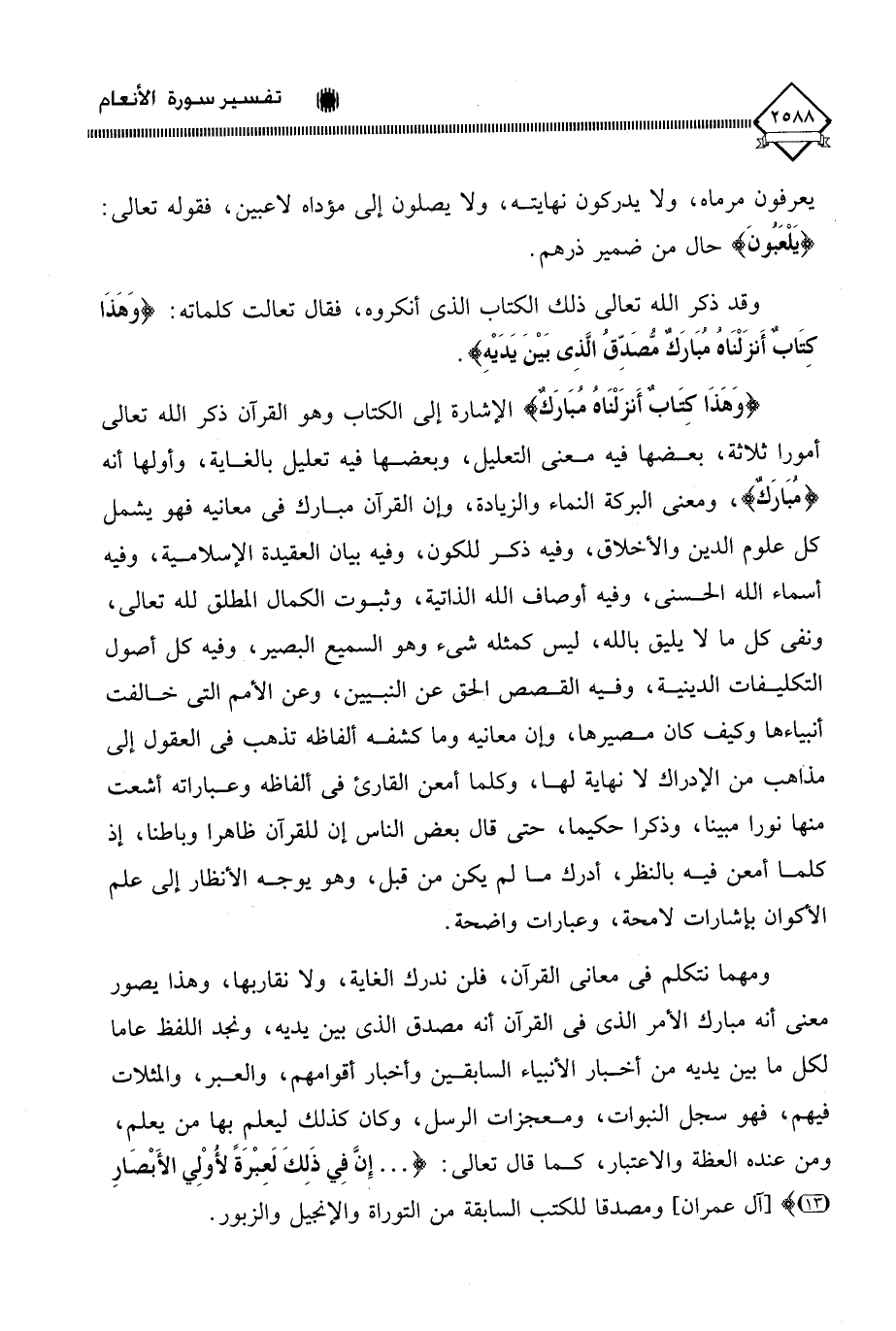 (وَهَذَا كِتَابٌ أَنْزَلْنَاهُ مُبَارَكٌ مُصَدِّقُ الَّذِي بَيْنَ يَدَيْهِ ... (92)