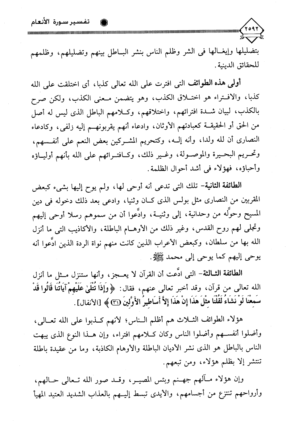 هؤلاء الطوائف الثلاث هم أظلم الناس، لأنهم كذبوا على الله تعالى، وأضلوا أنفسهم وأضلوا الناس وكان كلامهم افتراء، وإن هذا النوع الذي يبهت الناس بالباطل هو الذي نشر الأديان الباطلة والأوهام الكاذبة، وما من عقيدة باطلة تنتشر إلا بظلم هؤلاء، ومن تبعهم.