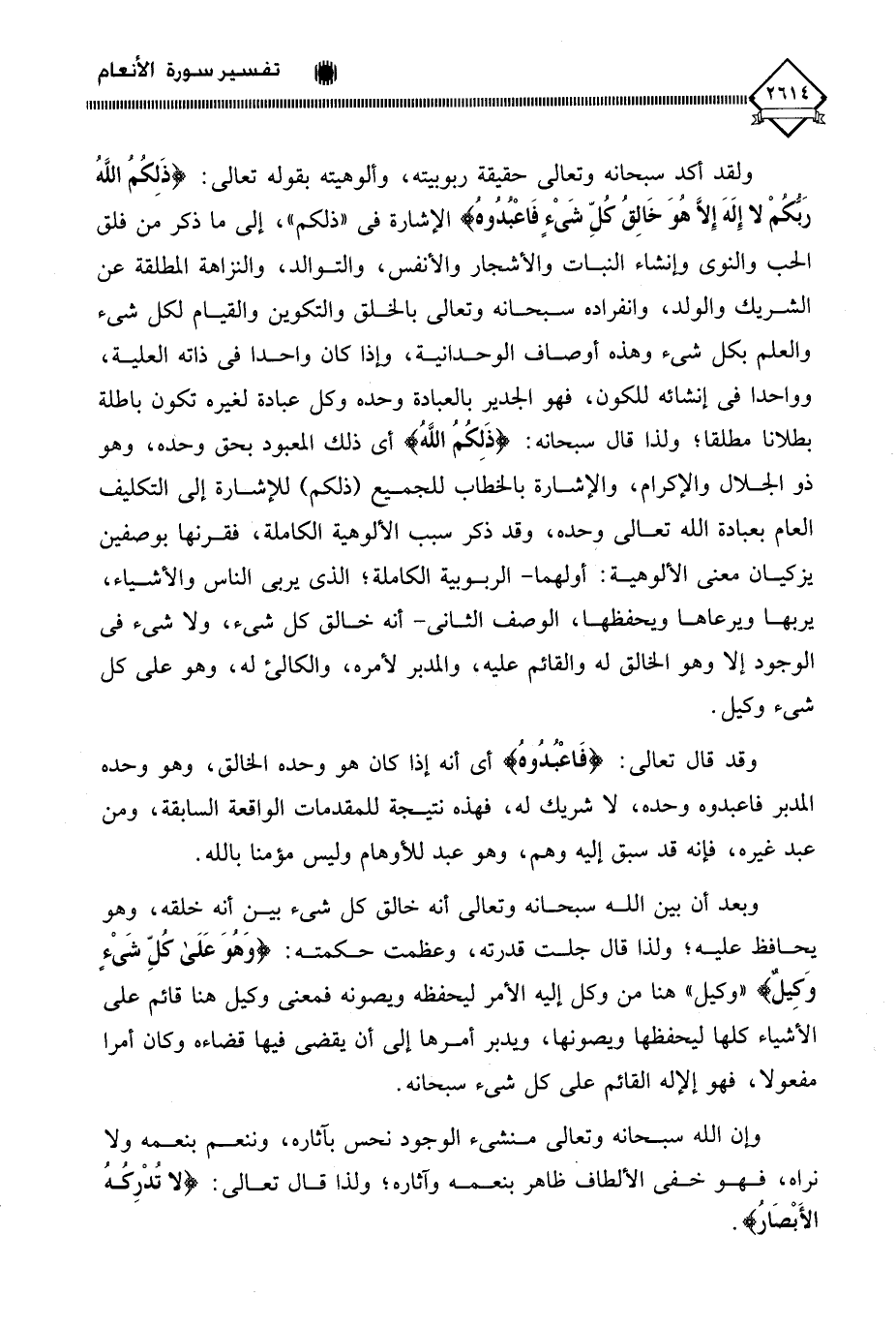 (ذَلِكُمُ اللَّهُ رَبُّكُمْ لَا إِلَهَ إِلَّا هُوَ خَالِقُ كُلِّ شَيْءٍ فَاعْبُدُوهُ ... (102)