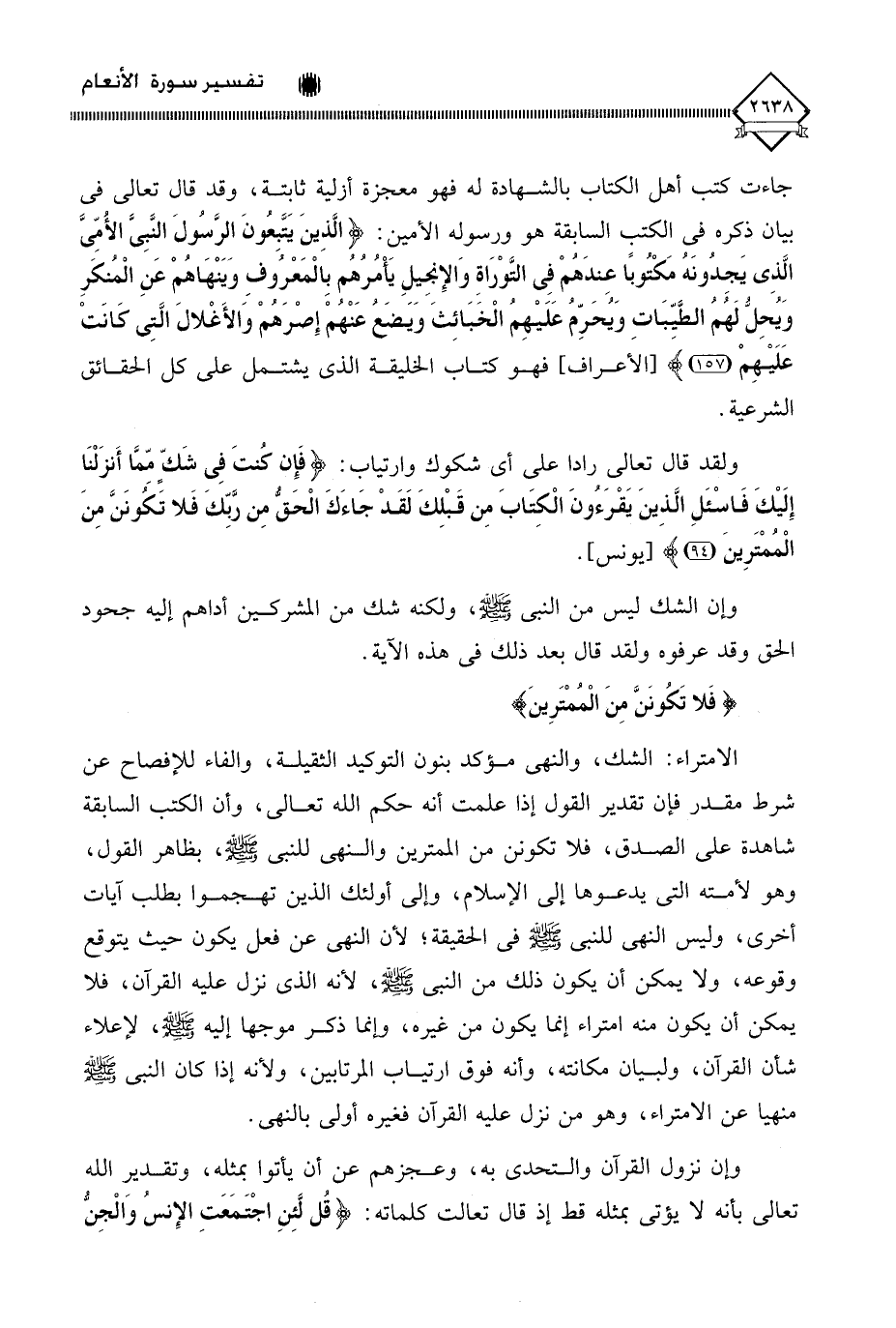 ولقد قال تعالى رادا على أي شكوك وارتياب: (فَإِنْ كُنْتَ فِي شَكٍّ مِمَّا أَنْزَلْنَا إِلَيْكَ فَاسْأَلِ الَّذِينَ يَقْرَءُونَ الْكِتَابَ مِنْ قَبْلِكَ لَقَدْ جَاءَكَ الْحَقُّ مِنْ رَبِّكَ فَلَا تَكُونَنَّ مِنَ الْمُمْتَرِينَ (94).