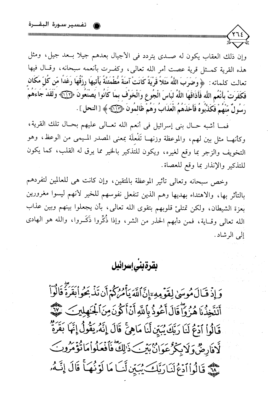 (وَإِذْ قَالَ مُوسَى لِقَوْمِهِ إِنَّ اللَّهَ يَأْمُرُكُمْ أَنْ تَذْبَحُوا بَقَرَةً قَالُوا أَتَتَّخِذُنَا هُزُوًا قَالَ أَعُوذُ بِاللَّهِ أَنْ أَكُونَ مِنَ الْجَاهِلِينَ (67) قَالُوا ادْعُ لَنَا رَبَّكَ يُبَيِّنْ لَنَا مَا هِيَ قَالَ إِنَّهُ يَقُولُ إِنَّهَا بَقَرَةٌ لَا فَارِضٌ وَلَا بِكْرٌ عَوَانٌ بَيْنَ ذَلِكَ فَافْعَلُوا مَا تُؤْمَرُونَ (68) قَالُوا ادْعُ لَنَا رَبَّكَ يُبَيِّنْ لَنَا مَا لَوْنُهَا قَالَ إِنَّهُ