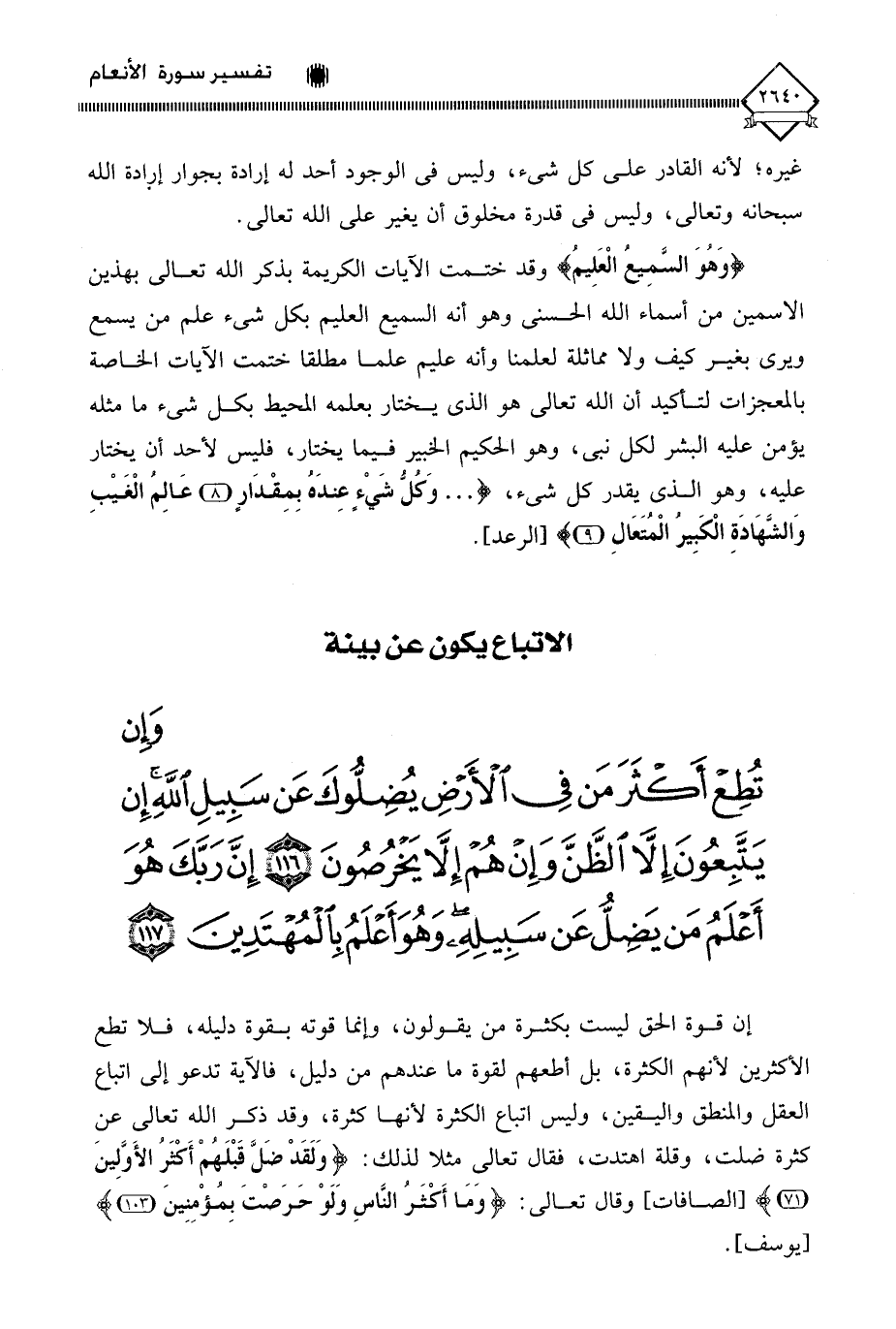 (وَإِنْ تُطِعْ أَكْثَرَ مَنْ فِي الْأَرْضِ يُضِلُّوكَ عَنْ سَبِيلِ اللَّهِ إِنْ يَتَّبِعُونَ إِلَّا الظَّنَّ وَإِنْ هُمْ إِلَّا يَخْرُصُونَ (116) إِنَّ رَبَّكَ هُوَ أَعْلَمُ مَنْ يَضِلُّ عَنْ سَبِيلِهِ وَهُوَ أَعْلَمُ بِالْمُهْتَدِينَ (117)