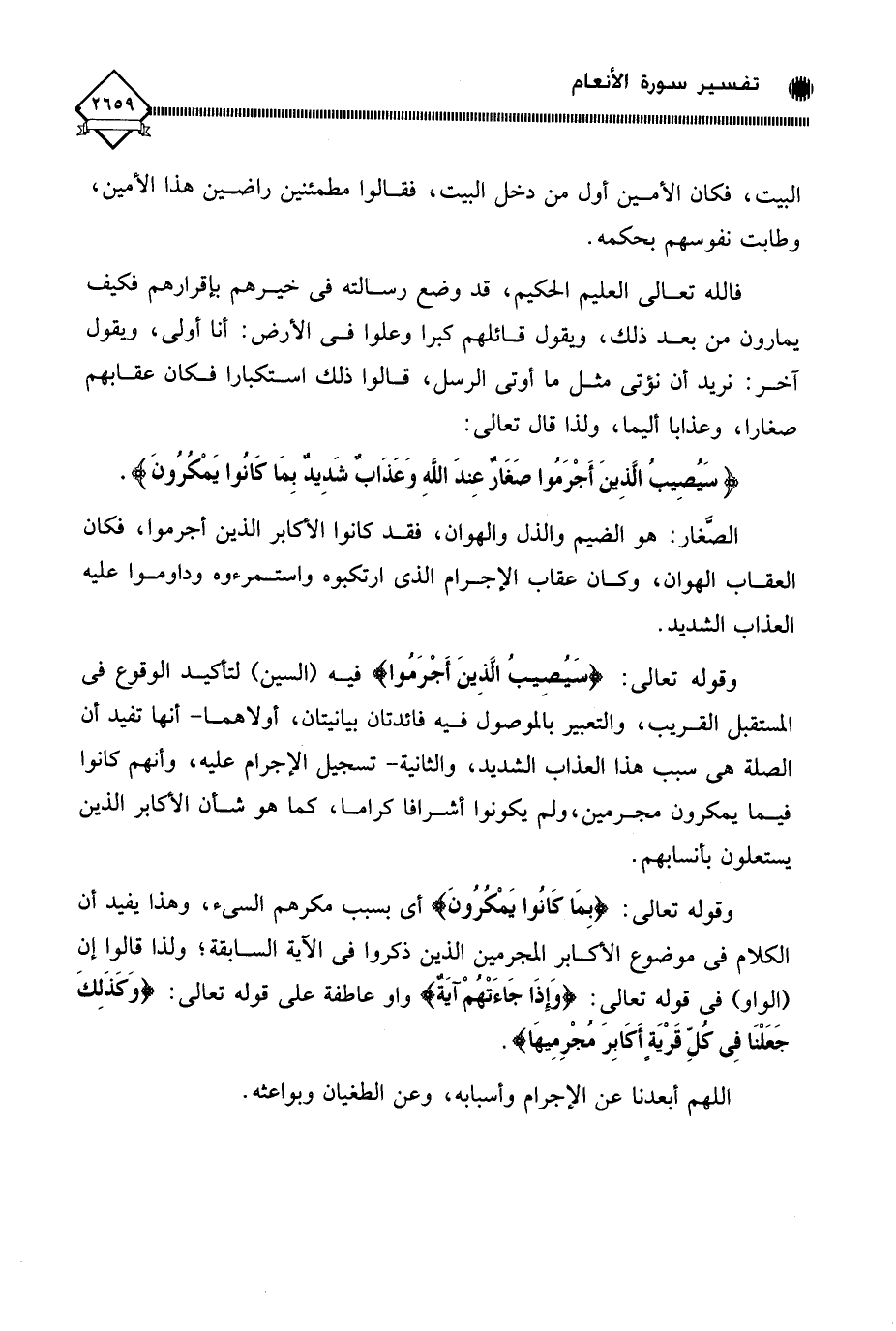وقوله تعالى: (بِمَا كانُوا يَمْكُرُونَ) أي بسبب مكرهم السيئ، وهذا يفيد أن الكلام في موضوع الأكابر المجرمين الذين ذكروا في الآية السابقة؛ ولذا قالوا إن (الواو) في قوله تعالى: (وَإذَا جَاءَتْهُمْ آيَة) واو عاطفة على قوله تعالى: (وَكذَلِكَ جَعَلْنَا فِى كل قَرْيَة أَكابِر مُجْرِمِيهَا).