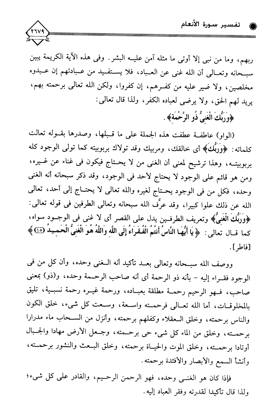 (وَرَبُّكَ الْغَنِيُّ ذُو الرَّحْمَةِ).