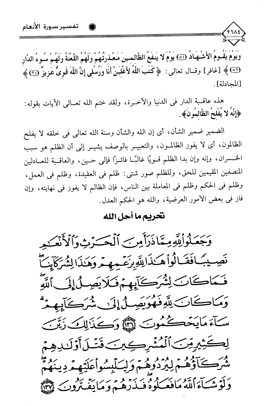 (وَجَعَلُوا لِلَّهِ مِمَّا ذَرَأَ مِنَ الْحَرْثِ وَالْأَنْعَامِ نَصِيبًا فَقَالُوا هَذَا لِلَّهِ بِزَعْمِهِمْ وَهَذَا لِشُرَكَائِنَا فَمَا كَانَ لِشُرَكَائِهِمْ فَلَا يَصِلُ إِلَى اللَّهِ وَمَا كَانَ لِلَّهِ فَهُوَ يَصِلُ إِلَى شُرَكَائِهِمْ سَاءَ مَا يَحْكُمُونَ (136) وَكَذَلِكَ زَيَّنَ لِكَثِيرٍ مِنَ الْمُشْرِكِينَ قَتْلَ أَوْلَادِهِمْ شُرَكَاؤُهُمْ لِيُرْدُوهُمْ وَلِيَلْبِسُوا عَلَيْهِمْ دِينَهُمْ وَلَوْ شَاءَ اللَّهُ مَا فَعَلُوهُ فَذَرْهُمْ وَمَا يَفْتَرُونَ (137)