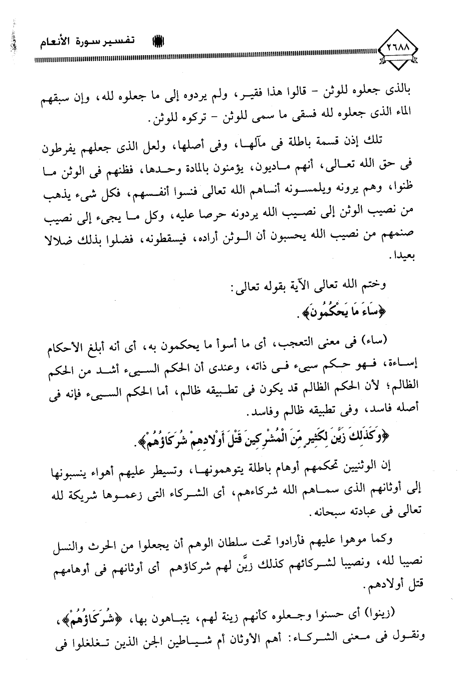 (وَكَذَلِكَ زَيَّنَ لِكَثِيرٍ مِنَ الْمُشْرِكِينَ قَتْلَ أَوْلَادِهِمْ شُرَكَاؤُهُمْ ... (137)