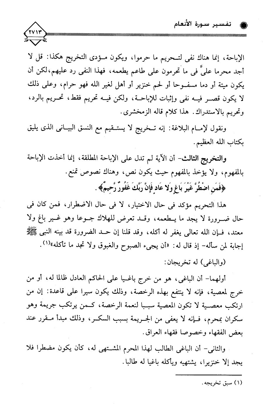 ونقول لإمام البلاغة: إنه تخريج لَا يستقيم مع النسق البياني الذي يليق بكتاب الله العظيم.