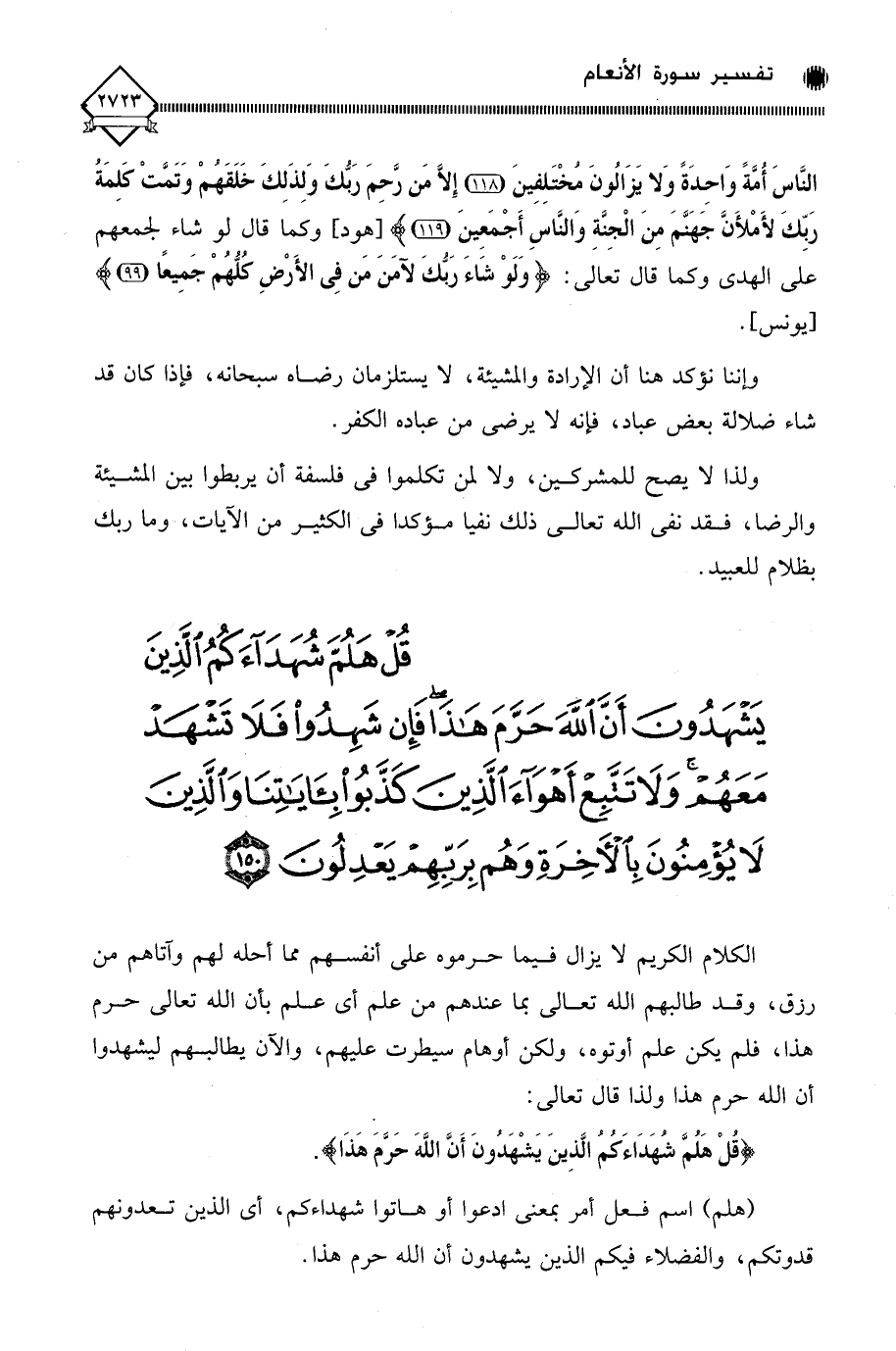 ولذا لَا يصح للمشركين، ولا لمن تكلموا في فلسفة أن يربطوا بين المشيئة والرضا، فقد نفَى الله تعالى ذلك نفيا مؤكدا في الكثير من الآيات، وما ربك بظلام للعبيد.