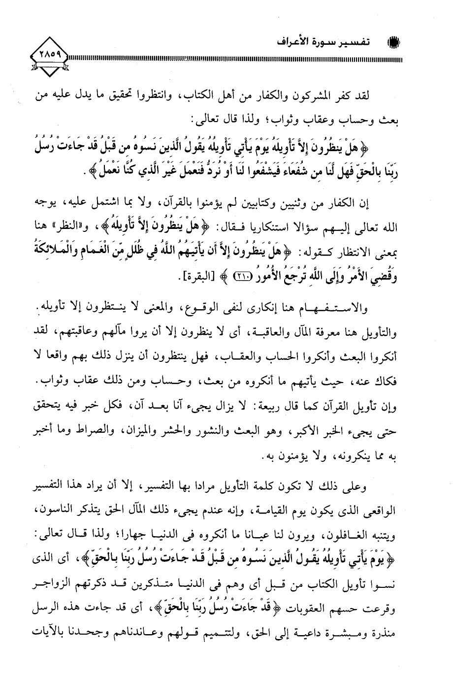 (هَلْ يَنْظُرُونَ إِلَّا تَأْوِيلَهُ يَوْمَ يَأْتِي تَأْوِيلُهُ يَقُولُ الَّذِينَ نَسُوهُ مِنْ قَبْلُ قَدْ جَاءَتْ رُسُلُ رَبِّنَا بِالْحَقِّ فَهَلْ لَنَا مِنْ شُفَعَاءَ فَيَشْفَعُوا لَنَا أَوْ نُرَدُّ فَنَعْمَلَ غَيْرَ الَّذِي كُنَّا نَعْمَلُ ... (53)