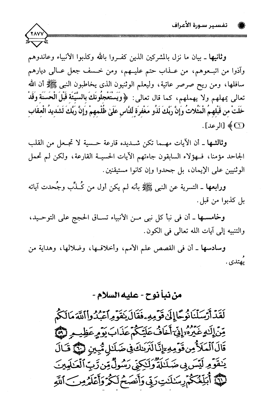 (لَقَدْ أَرْسَلْنَا نُوحًا إِلَى قَوْمِهِ فَقَالَ يَا قَوْمِ اعْبُدُوا اللَّهَ مَا لَكُمْ مِنْ إِلَهٍ غَيْرُهُ إِنِّي أَخَافُ عَلَيْكُمْ عَذَابَ يَوْمٍ عَظِيمٍ (59) قَالَ الْمَلَأُ مِنْ قَوْمِهِ إِنَّا لَنَرَاكَ فِي ضَلَالٍ مُبِينٍ (60) قَالَ يَا قَوْمِ لَيْسَ بِي ضَلَالَةٌ وَلَكِنِّي رَسُولٌ مِنْ رَبِّ الْعَالَمِينَ (61) أُبَلِّغُكُمْ رِسَالَاتِ رَبِّي وَأَنْصَحُ لَكُمْ وَأَعْلَمُ مِنَ اللَّهِ