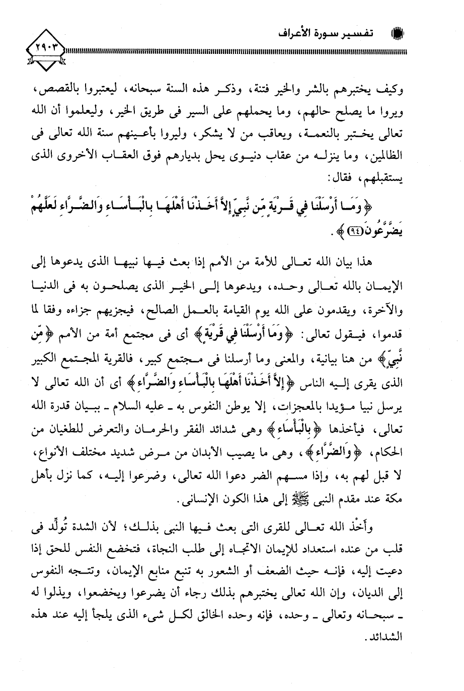 (وَمَا أَرْسَلْنَا فِي قَرْيَةٍ مِنْ نَبِيٍّ إِلَّا أَخَذْنَا أَهْلَهَا بِالْبَأْسَاءِ وَالضَّرَّاءِ لَعَلَّهُمْ يَضَّرَّعُونَ).