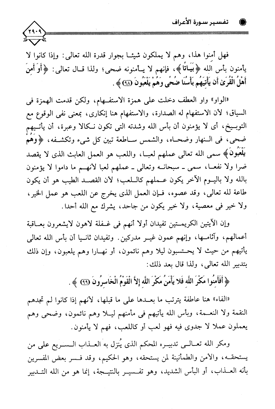(أَفَأَمِنُوا مَكْرَ اللَّهِ فَلَا يَأْمَنُ مَكْرَ اللَّهِ إِلَّا الْقَوْمُ الْخَاسِرُونَ (99)