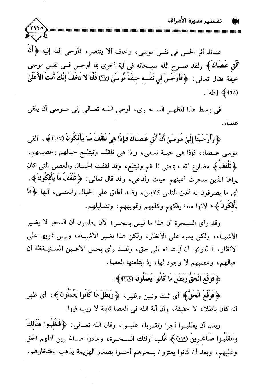 في وسط هذا المظهر السحري، أوحى الله تعالى إلى موسى أن يلقي عصاه.