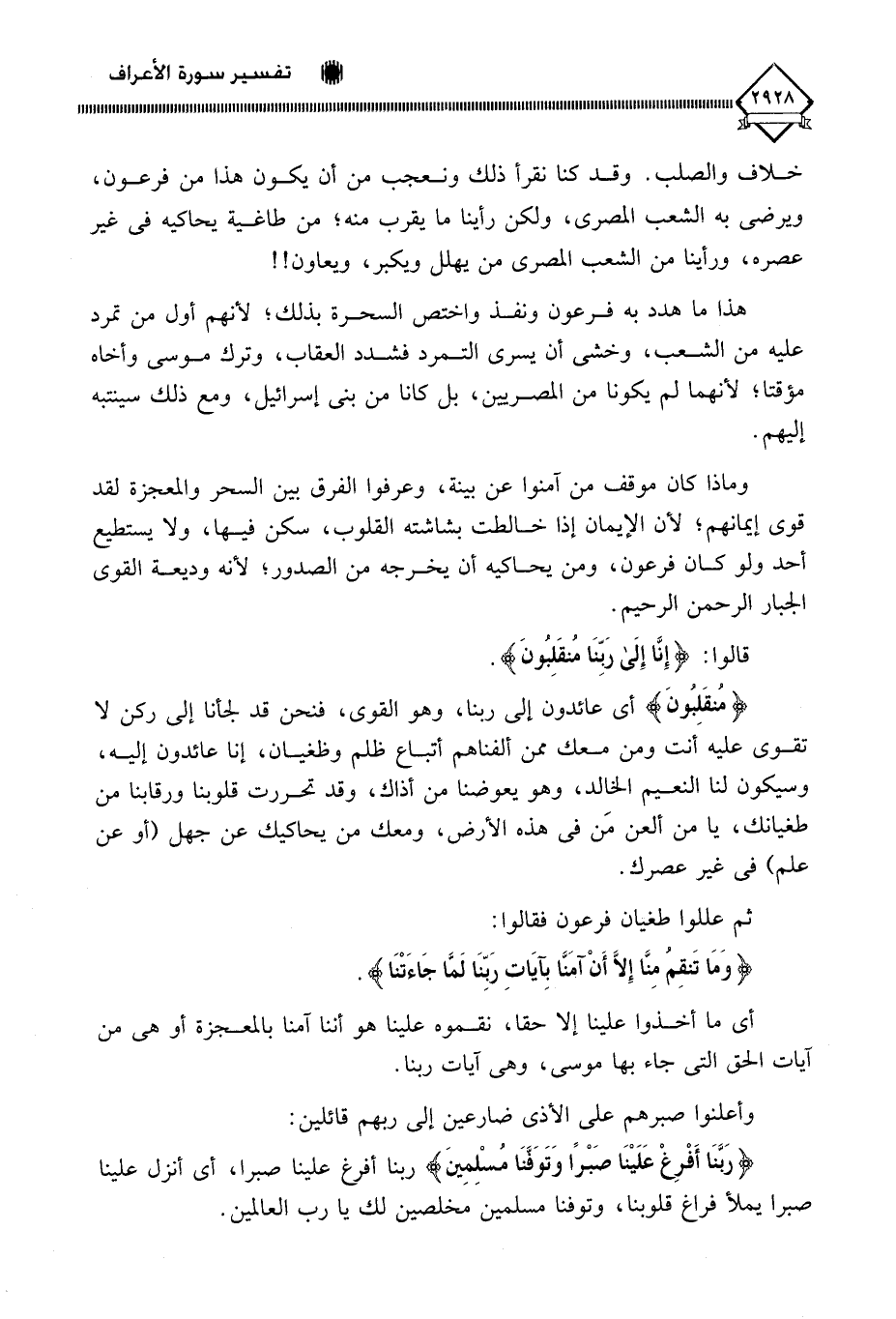 وأعلنوا صبرهم على الأذى ضارعين إلى ربهم قائلين: (رَبَّنَا أَفْرِغْ عَلَيْنَا صَبْرًا وَتَوَفَّنَا مُسْلِمِينَ) ربنا أفرغ علينا صبرا، أي أنزل علينا صبرا يملأ فراغ قلوبنا، وتوفنا مسلمين مخلصين لك يا رب العالمين.
