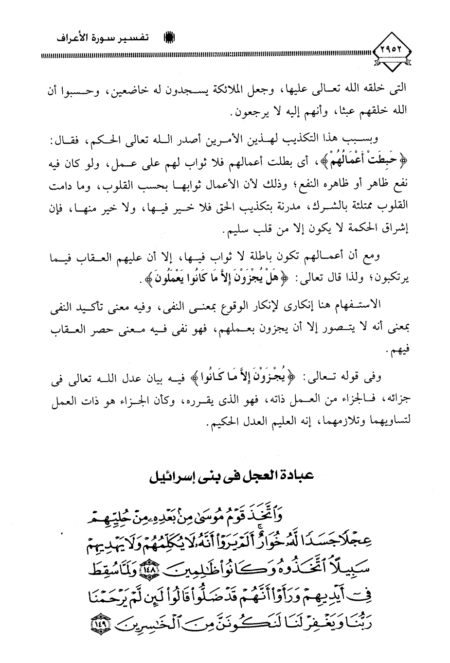 (وَاتَّخَذَ قَوْمُ مُوسَى مِنْ بَعْدِهِ مِنْ حُلِيِّهِمْ عِجْلًا جَسَدًا لَهُ خُوَارٌ أَلَمْ يَرَوْا أَنَّهُ لَا يُكَلِّمُهُمْ وَلَا يَهْدِيهِمْ سَبِيلًا اتَّخَذُوهُ وَكَانُوا ظَالِمِينَ (148) وَلَمَّا سُقِطَ فِي أَيْدِيهِمْ وَرَأَوْا أَنَّهُمْ قَدْ ضَلُّوا قَالُوا لَئِنْ لَمْ يَرْحَمْنَا رَبُّنَا وَيَغْفِرْ لَنَا لَنَكُونَنَّ مِنَ الْخَاسِرِينَ (149)