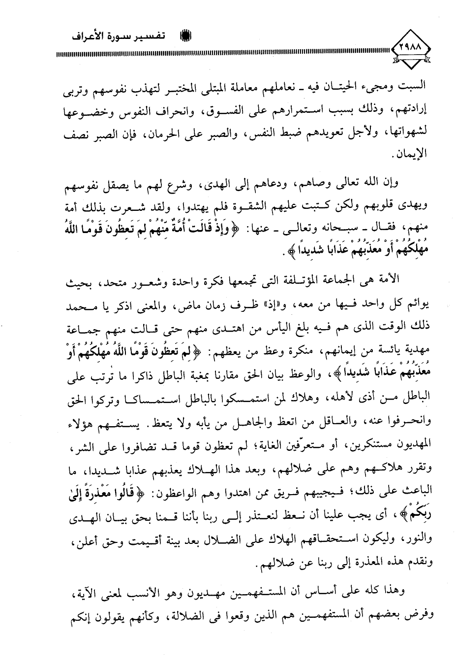 (وَإِذْ قَالَتْ أُمَّةٌ مِنْهُمْ لِمَ تَعِظُونَ قَوْمًا اللَّهُ مُهْلِكُهُمْ أَوْ مُعَذِّبُهُمْ عَذَابًا شَدِيدًا ... (164)