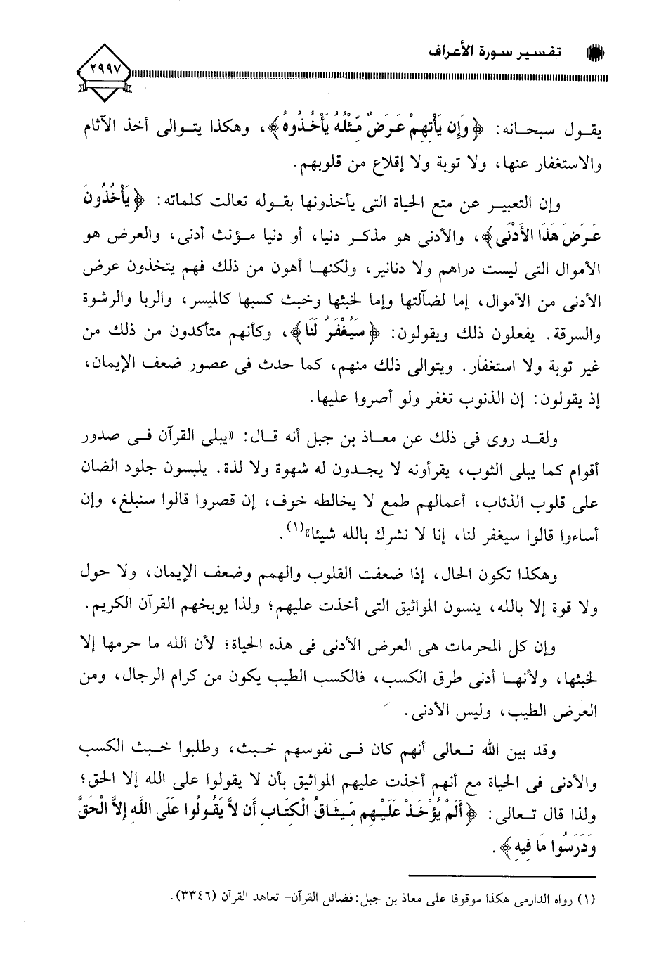 يقول سبحانه: (وَإِنْ يَأْتِهِمْ عَرَضٌ مِثْلُهُ يَأْخُذُوهُ)، وهكذا يتوالى أخذ الآثام والاستغفار عنها، ولا توبة ولا إقلاع من قلوبهم.