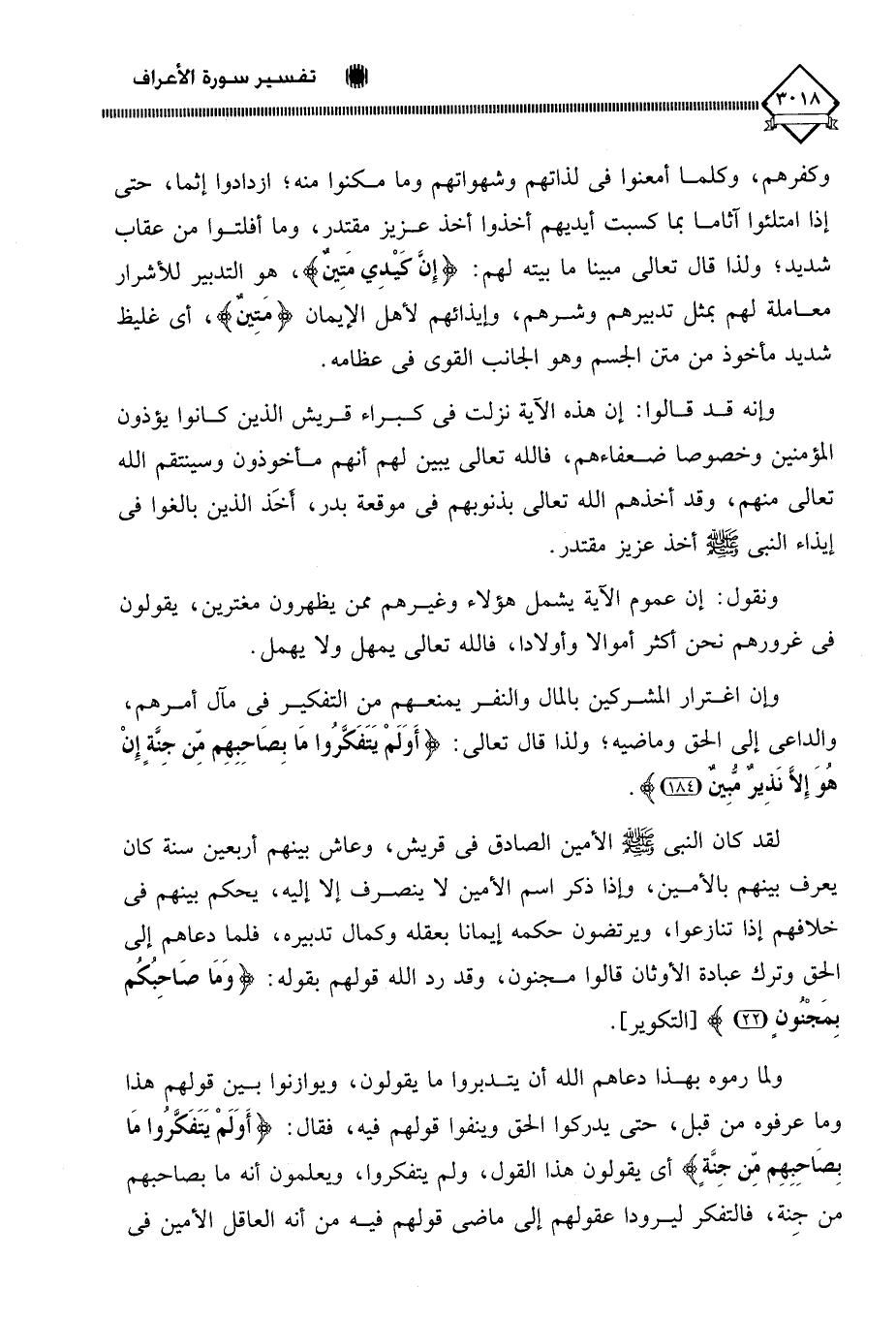 (أَوَلَمْ يَتَفَكَّرُوا مَا بِصَاحِبِهِمْ مِنْ جِنَّةٍ إِنْ هُوَ إِلَّا نَذِيرٌ مُبِينٌ (184)
