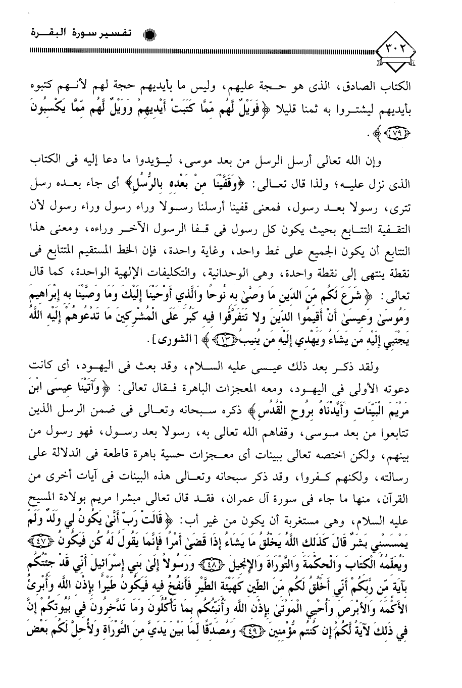 وإن الله تعالى أرسل الرسل من بعد موسى، ليؤيدوا ما دعا إليه في الكتاب الذي نزل عليه؛ ولذا قال تعالى: (وَقَفَّيْنَا مِنْ بَعْدِهِ بِالرُّسُلِ) أي جاء بعده رسل تترى، رسولا بعد رسول، فمعنى قفينا أرسلنا رسولا وراء رسول وراء رسول لأن التقفية التتابع بحيث يكون كل رسول في قفا الرسول الآخر وراءه، ومعنى هذا التتابع أن يكون الجميع على نمط واحد، وغاية واحدة، فإن الخط المستقيم المتتابع في نقطة ينتهي إِلى نقطة واحدة، وهي الوحدانية، والتكليفات الإلهية الواحدة، كما قال تعالى: (شَرَعَ لَكُمْ مِنَ الدِّينِ مَا وَصَّى بِهِ نُوحًا وَالَّذِي أَوْحَيْنَا إِلَيْكَ وَمَا وَصَّيْنَا بِهِ إِبْرَاهِيمَ وَمُوسَى وَعِيسَى أَنْ أَقِيمُوا الدِّينَ وَلَا تَتَفَرَّقُوا فِيهِ كَبُرَ عَلَى الْمُشْرِكِينَ مَا تَدْعُوهُمْ إِلَيْهِ اللَّهُ يَجْتَبِي إِلَيْهِ مَنْ يَشَاءُ وَيَهْدِي إِلَيْهِ مَنْ يُنِيبُ (13).