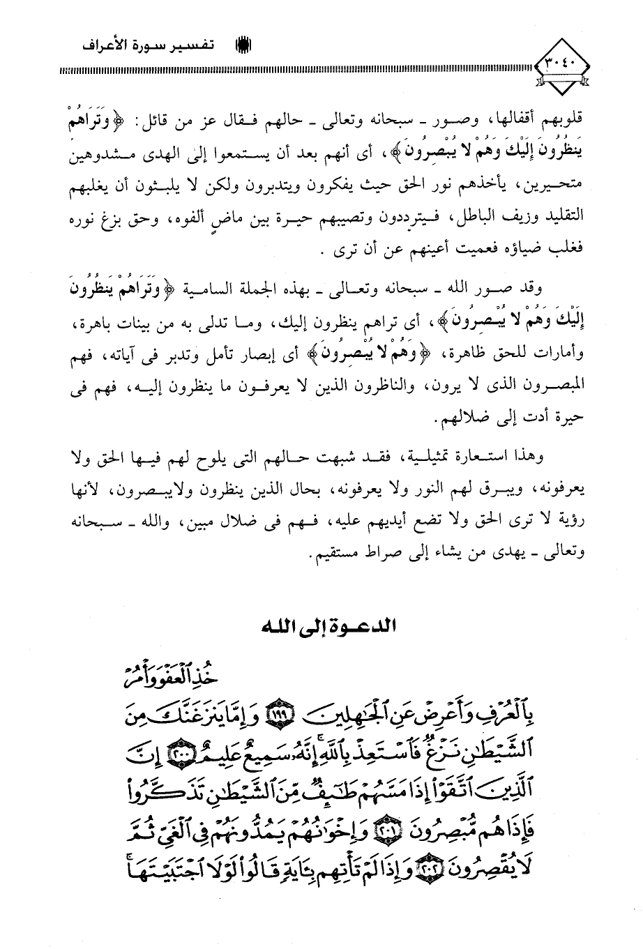 (خُذِ الْعَفْوَ وَأْمُرْ بِالْعُرْفِ وَأَعْرِضْ عَنِ الْجَاهِلِينَ (199) وَإِمَّا يَنْزَغَنَّكَ مِنَ الشَّيْطَانِ نَزْغٌ فَاسْتَعِذْ بِاللَّهِ إِنَّهُ سَمِيعٌ عَلِيمٌ (200) إِنَّ الَّذِينَ اتَّقَوْا إِذَا مَسَّهُمْ طَائِفٌ مِنَ الشَّيْطَانِ تَذَكَّرُوا فَإِذَا هُمْ مُبْصِرُونَ (201) وَإِخْوَانُهُمْ يَمُدُّونَهُمْ فِي الْغَيِّ ثُمَّ لَا يُقْصِرُونَ (202) وَإِذَا لَمْ تَأْتِهِمْ بِآيَةٍ قَالُوا لَوْلَا اجْتَبَيْتَهَا