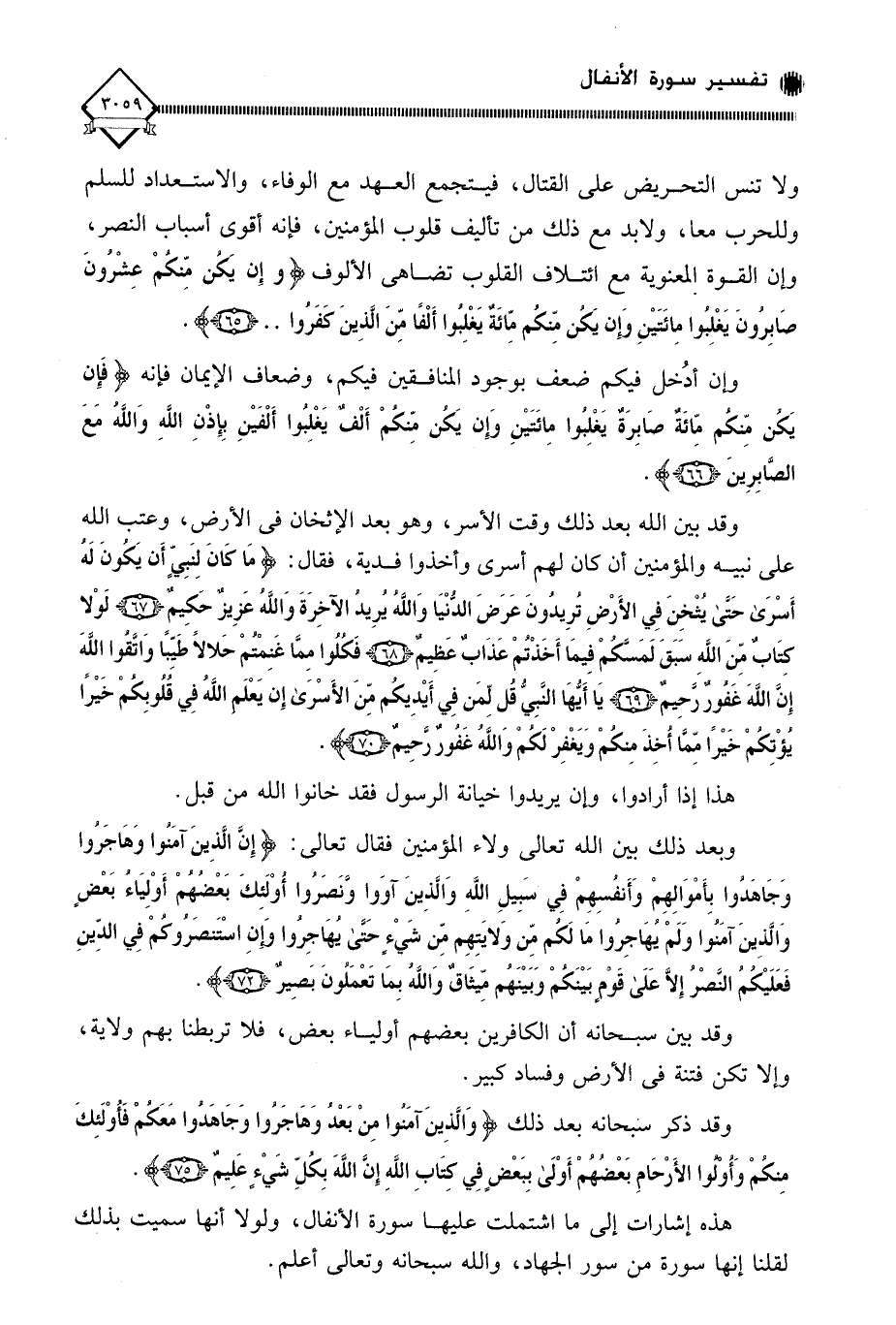 هذه إشارات إلى ما اشتملت عليها سورة الأنفال، ولولا أنها سميت بذلك لقلنا إنها سورة من سور الجهاد، والله سبحانه وتعالى أعلم.