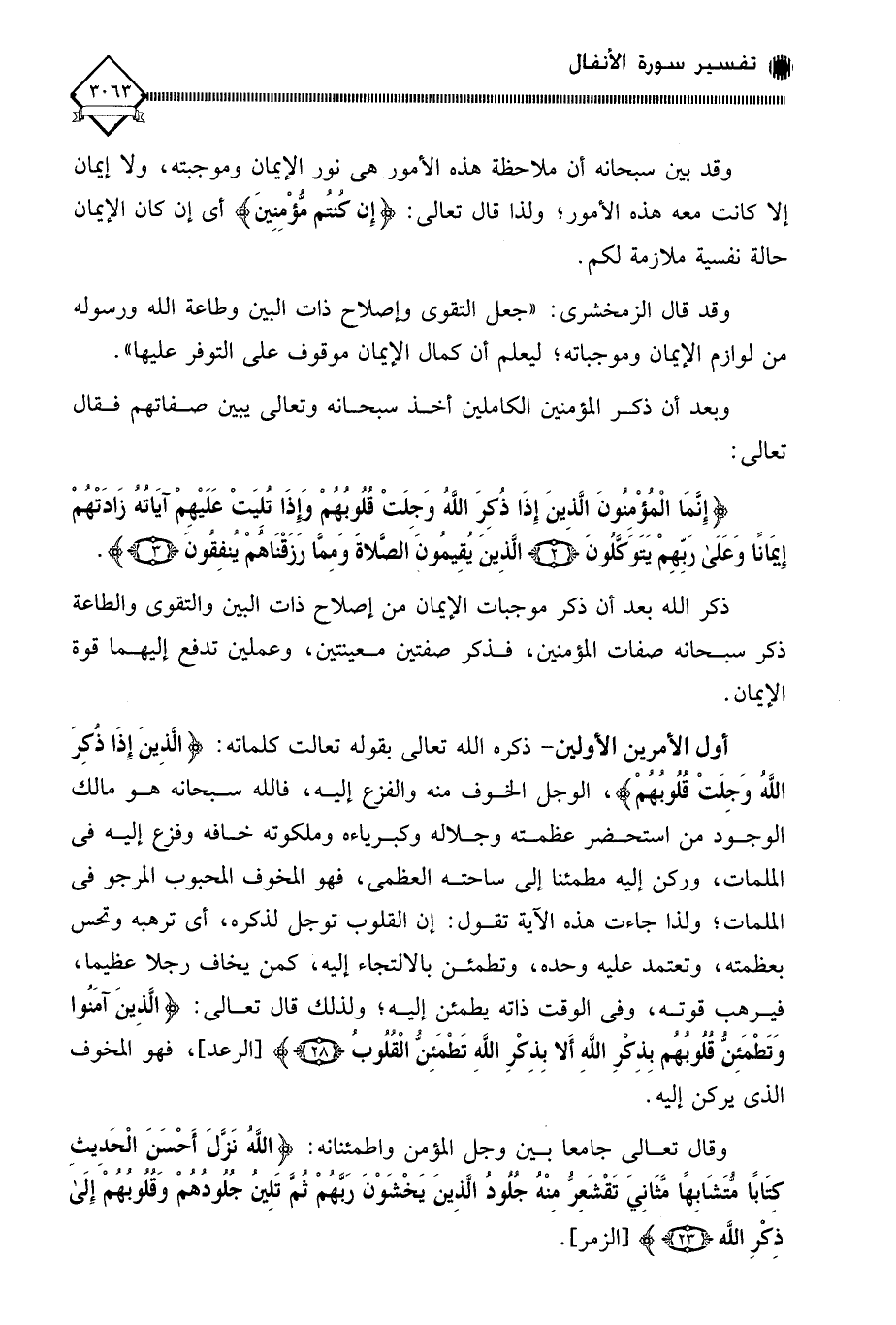 (إِنَّمَا الْمُؤْمِنُونَ الَّذِينَ إِذَا ذُكِرَ اللَّهُ وَجِلَتْ قُلُوبُهُمْ وَإِذَا تُلِيَتْ عَلَيْهِمْ آيَاتُهُ زَادَتْهُمْ إِيمَانًا وَعَلَى رَبِّهِمْ يَتَوَكَّلُونَ (2) الَّذِينَ يُقِيمُونَ الصَّلَاةَ وَمِمَّا رَزَقْنَاهُمْ يُنْفِقُونَ (3)