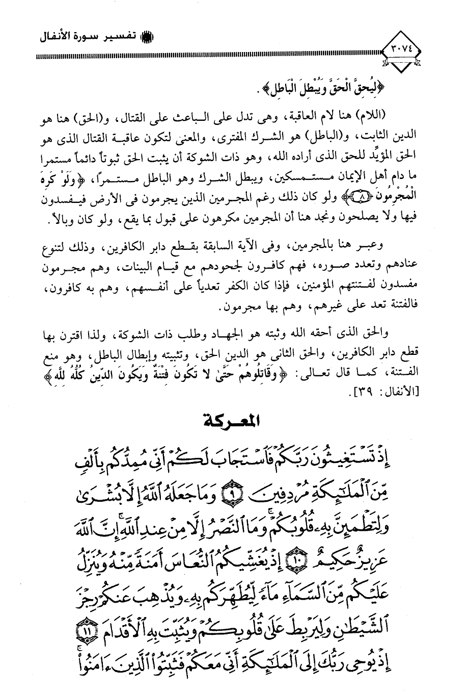 (إِذْ تَسْتَغِيثُونَ رَبَّكُمْ فَاسْتَجَابَ لَكُمْ أَنِّي مُمِدُّكُمْ بِأَلْفٍ مِنَ الْمَلَائِكَةِ مُرْدِفِينَ (9) وَمَا جَعَلَهُ اللَّهُ إِلَّا بُشْرَى وَلِتَطْمَئِنَّ بِهِ قُلُوبُكُمْ وَمَا النَّصْرُ إِلَّا مِنْ عِنْدِ اللَّهِ إِنَّ اللَّهَ عَزِيزٌ حَكِيمٌ (10) إِذْ يُغَشِّيكُمُ النُّعَاسَ أَمَنَةً مِنْهُ وَيُنَزِّلُ عَلَيْكُمْ مِنَ السَّمَاءِ مَاءً لِيُطَهِّرَكُمْ بِهِ وَيُذْهِبَ عَنْكُمْ رِجْزَ الشَّيْطَانِ وَلِيَرْبِطَ عَلَى قُلُوبِكُمْ وَيُثَبِّتَ بِهِ الْأَقْدَامَ (11) إِذْ يُوحِي رَبُّكَ إِلَى الْمَلَائِكَةِ أَنِّي مَعَكُمْ فَثَبِّتُوا الَّذِينَ آمَنُوا