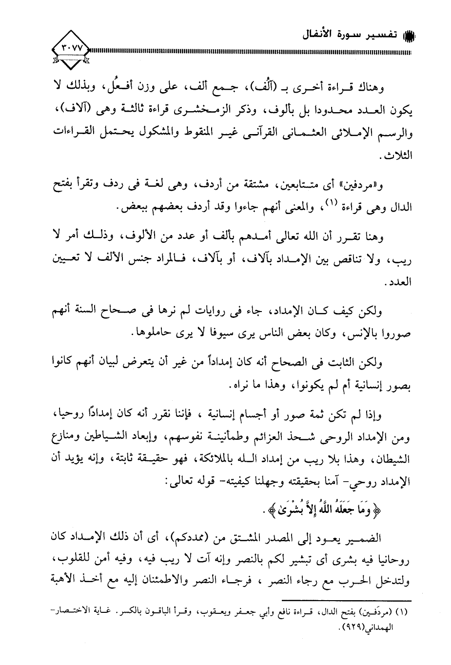 (¬1) (مردَفين) بفتح الدال، قراءة نافع وأبي جعفر ويعقوب، وقرأ الباقون بالكسر. غاية الاختصار - الهمداني (929).