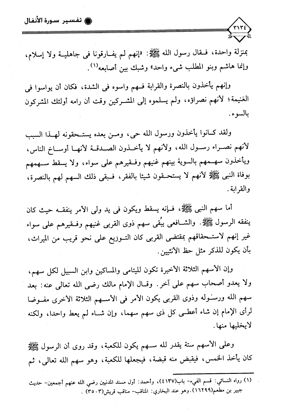 (¬1) رواه النسائي: قسم الفيء - باب (4137)، وأحمد: أول مسند المدنيين رضي الله عنهم أجمعين - حديث جبير بن مطعم (16299). وهو عند البخاري: المناقب - مناقب قريش (3503).