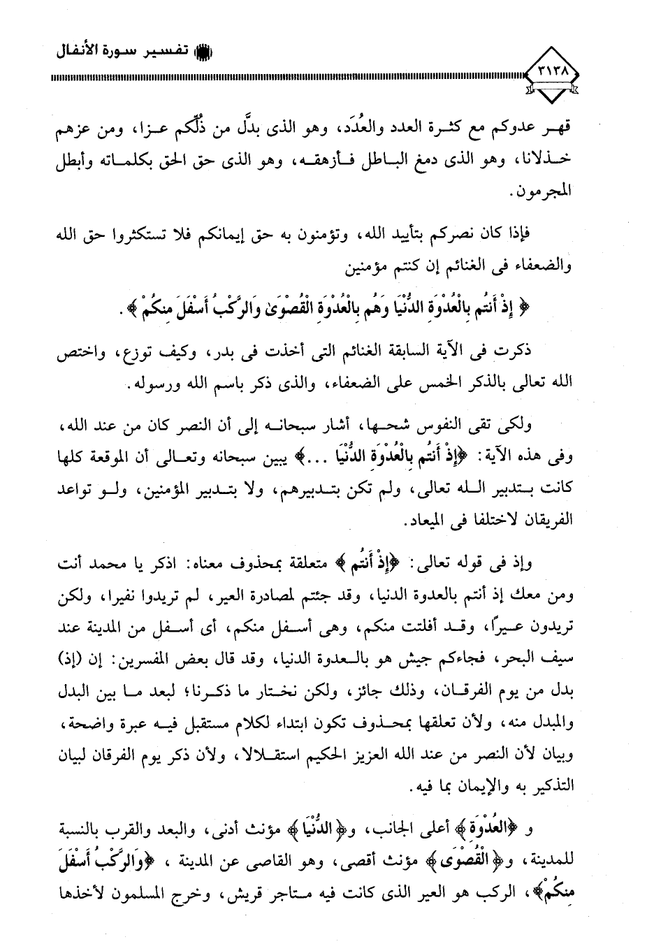 (إِذْ أَنْتُمْ بِالْعُدْوَةِ الدُّنْيَا وَهُمْ بِالْعُدْوَةِ الْقُصْوَى وَالرَّكْبُ أَسْفَلَ مِنْكُمْ ... (42)