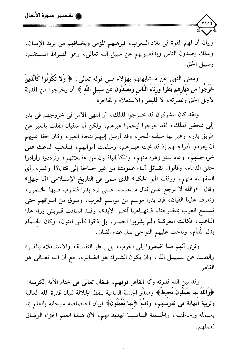 ونرى أنهم ما اضطروا إلى الحرب، بل بطر النقمة، والاستعلاء بالقوة والصد عن سبيل الله، وأن يكون الشرك هو الغالب، مع أن الله تعالى هو القاهر.