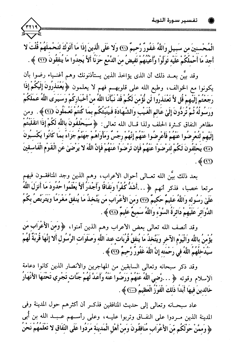 الْمُحْسِنِينَ مِنْ سَبِيلٍ وَاللَّهُ غَفُورٌ رَحِيمٌ (91) وَلَا عَلَى الَّذِينَ إِذَا مَا أَتَوْكَ لِتَحْمِلَهُمْ قُلْتَ لَا أَجِدُ مَا أَحْمِلُكُمْ عَلَيْهِ تَوَلَّوْا وَأَعْيُنُهُمْ تَفِيضُ مِنَ الدَّمْعِ حَزَنًا أَلَّا يَجِدُوا مَا يُنْفِقُونَ (92).