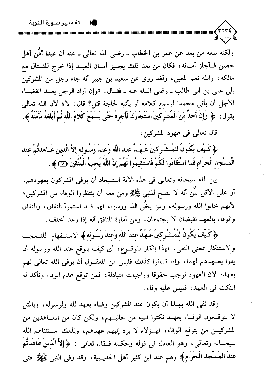 (كَيْفَ يَكُونُ لِلْمُشْرِكِينَ عَهْدٌ عِنْدَ اللَّهِ وَعِنْدَ رَسُولِهِ إِلَّا الَّذِينَ عَاهَدْتُمْ عِنْدَ الْمَسْجِدِ الْحَرَامِ فَمَا اسْتَقَامُوا لَكُمْ فَاسْتَقِيمُوا لَهُمْ إِنَّ اللَّهَ يُحِبُّ الْمُتَّقِينَ (7)