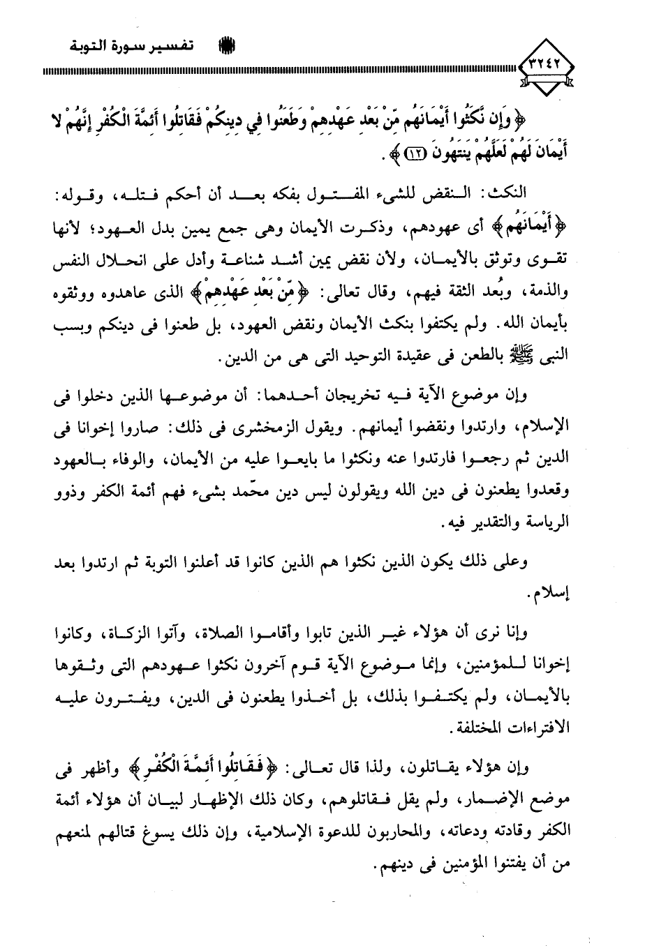 (وَإِنْ نَكَثُوا أَيْمَانَهُمْ مِنْ بَعْدِ عَهْدِهِمْ وَطَعَنُوا فِي دِينِكُمْ فَقَاتِلُوا أَئِمَّةَ الْكُفْرِ إِنَّهُمْ لَا أَيْمَانَ لَهُمْ لَعَلَّهُمْ يَنْتَهُونَ (12)