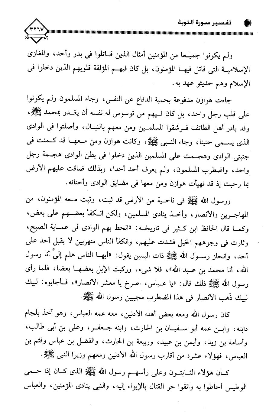 كان هؤلاء الثابتون وعلى رأسهم رسول الله - صلى الله عليه وسلم - الذي كان إذا حمى الوطيس أحاطوا به واتقوا حر القتال بالإيواء إليه، والنبي ينادي المؤمنين، والعباس