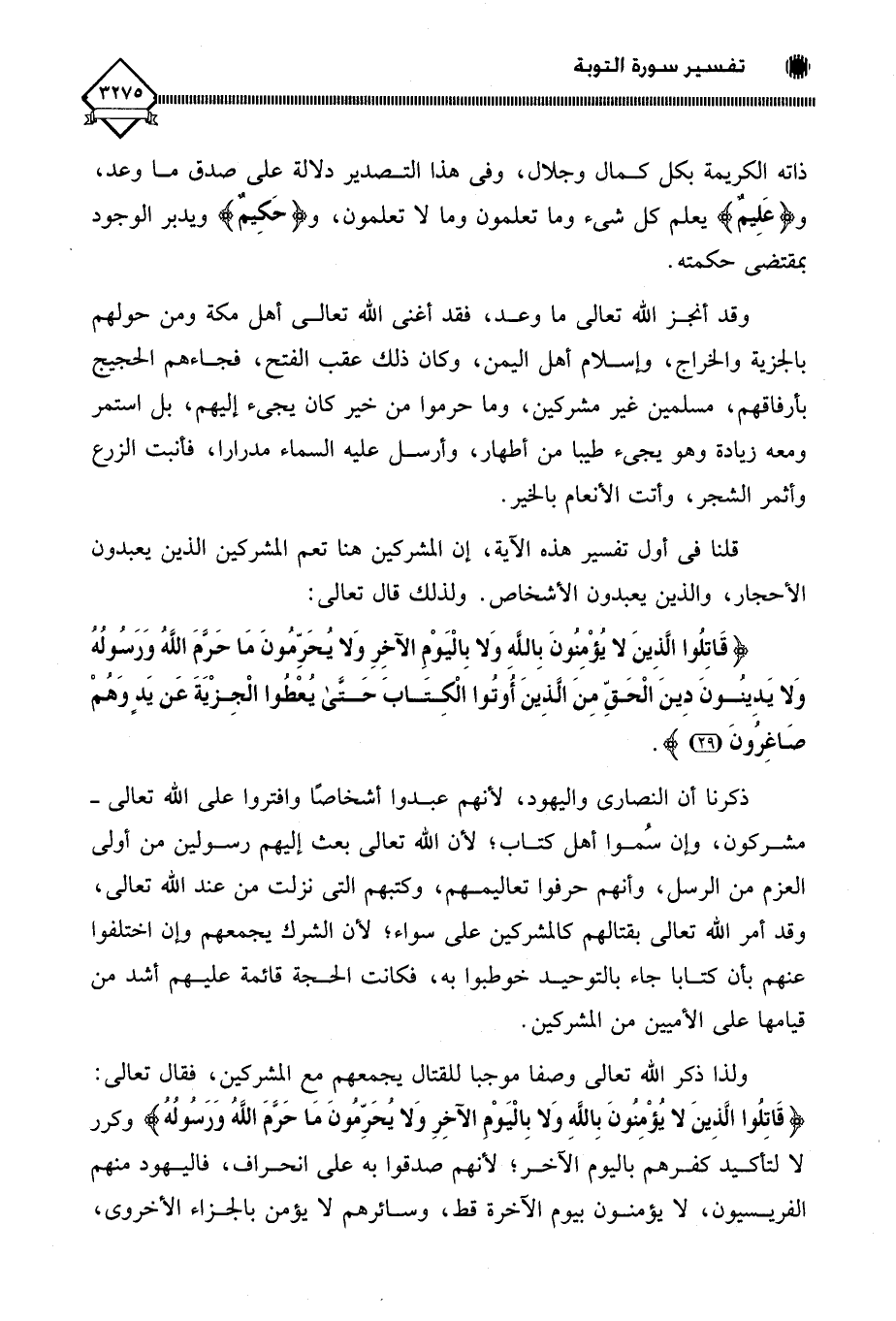 (قَاتِلُوا الَّذِينَ لَا يُؤْمِنُونَ بِاللَّهِ وَلَا بِالْيَوْمِ الْآخِرِ وَلَا يُحَرِّمُونَ مَا حَرَّمَ اللَّهُ وَرَسُولُهُ وَلَا يَدِينُونَ دِينَ الْحَقِّ مِنَ الَّذِينَ أُوتُوا الْكِتَابَ حَتَّى يُعْطُوا الْجِزْيَةَ عَنْ يَدٍ وَهُمْ صَاغِرُونَ (29)