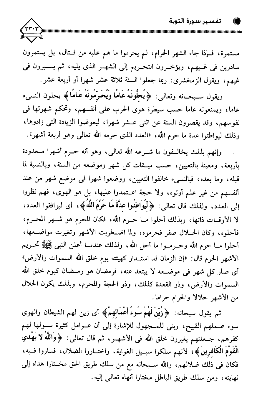 مستمرة، فإذا جاء الشهر الحرام، لم يحرموا ما هم عليه من قتال، بل يستمرون سادرين في غيهم، ويؤخرون التحريم إلى الشهر الذي يليه، ثم يسيرون في غيهم، ويقول الزمخشري: ربما جعلوا السنة ثلاثة عشر شهرا أو أربعة عشر.
