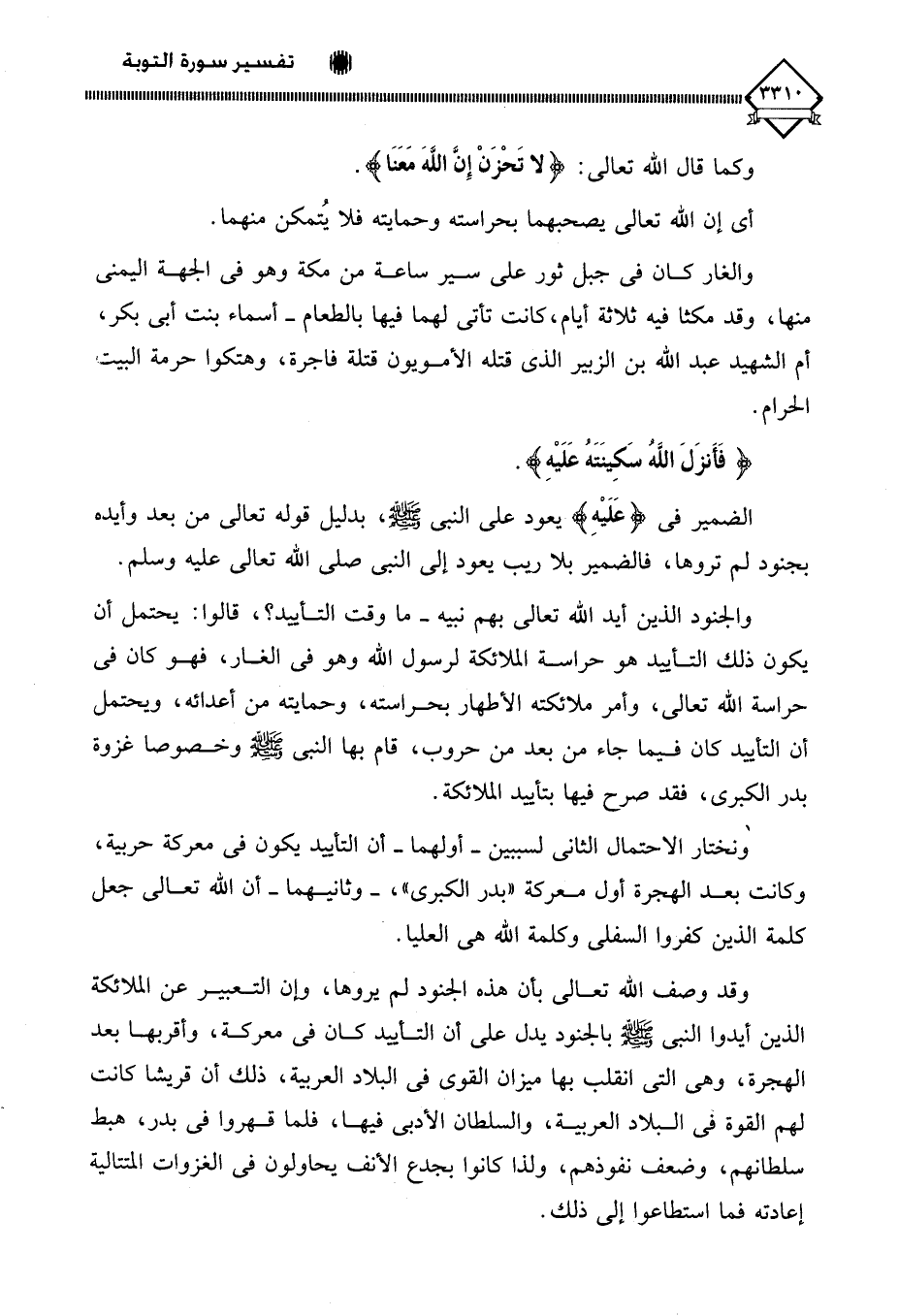 ونختار الاحتمال الثاني لسببين - أولهما - أن التأييد يكون في معركة حربية، وكانت بعد الهجرة أول معركة " بدر الكبرى "، - وثانيهما - أن الله تعالى جعل كلمة الذين كفروا السفلى وكلمة الله هي العليا.
