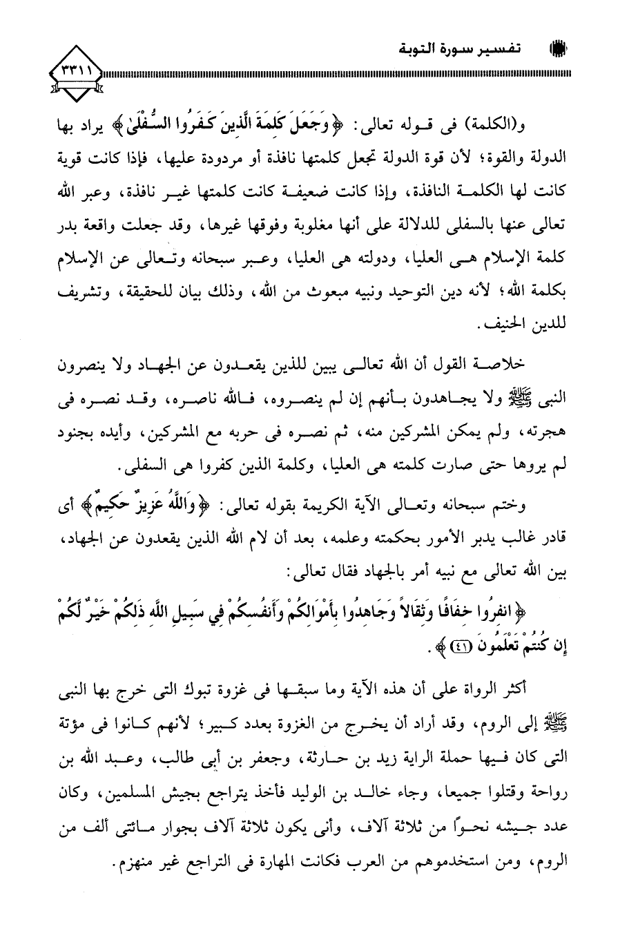 (انْفِرُوا خِفَافًا وَثِقَالًا وَجَاهِدُوا بِأَمْوَالِكُمْ وَأَنْفُسِكُمْ فِي سَبِيلِ اللَّهِ ذَلِكُمْ خَيْرٌ لَكُمْ إِنْ كُنْتُمْ تَعْلَمُونَ (41)