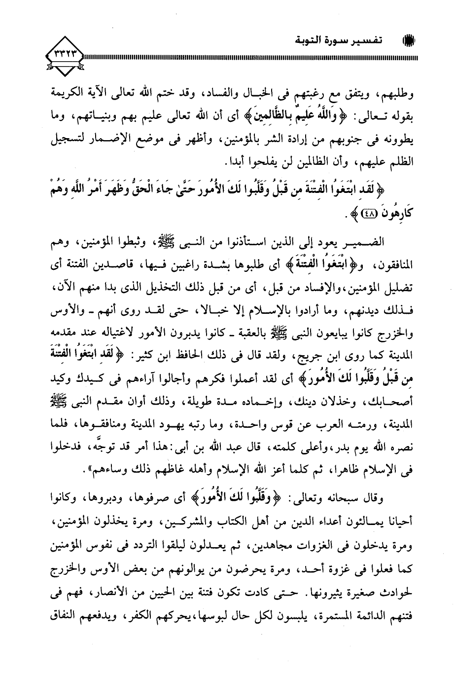 (لَقَدِ ابْتَغَوُا الْفِتْنَةَ مِنْ قَبْلُ وَقَلَّبُوا لَكَ الْأُمُورَ حَتَّى جَاءَ الْحَقُّ وَظَهَرَ أَمْرُ اللَّهِ وَهُمْ كَارِهُونَ (48)