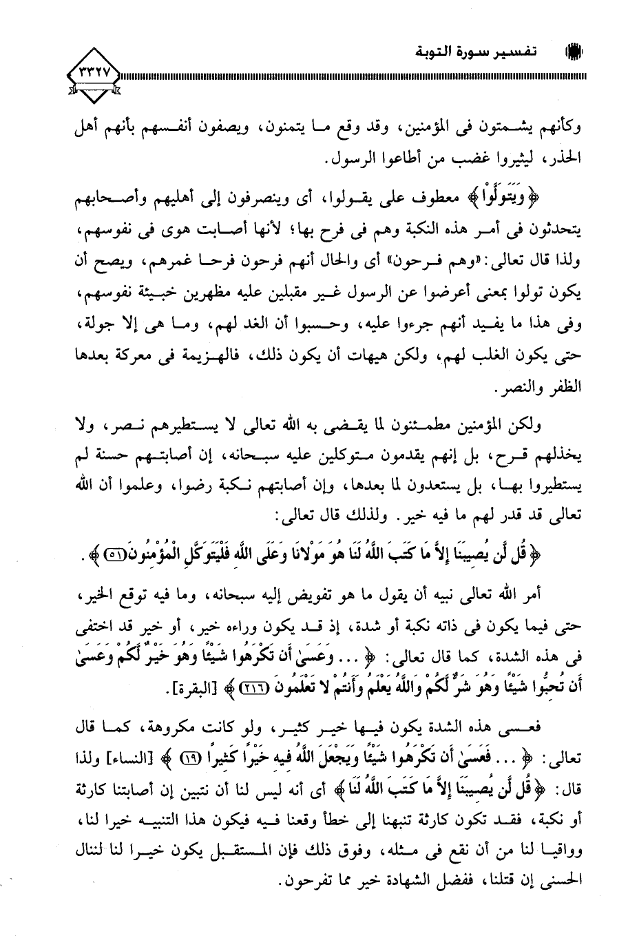(قُلْ لَنْ يُصِيبَنَا إِلَّا مَا كَتَبَ اللَّهُ لَنَا هُوَ مَوْلَانَا وَعَلَى اللَّهِ فَلْيَتَوَكَّلِ الْمُؤْمِنُونَ (51)