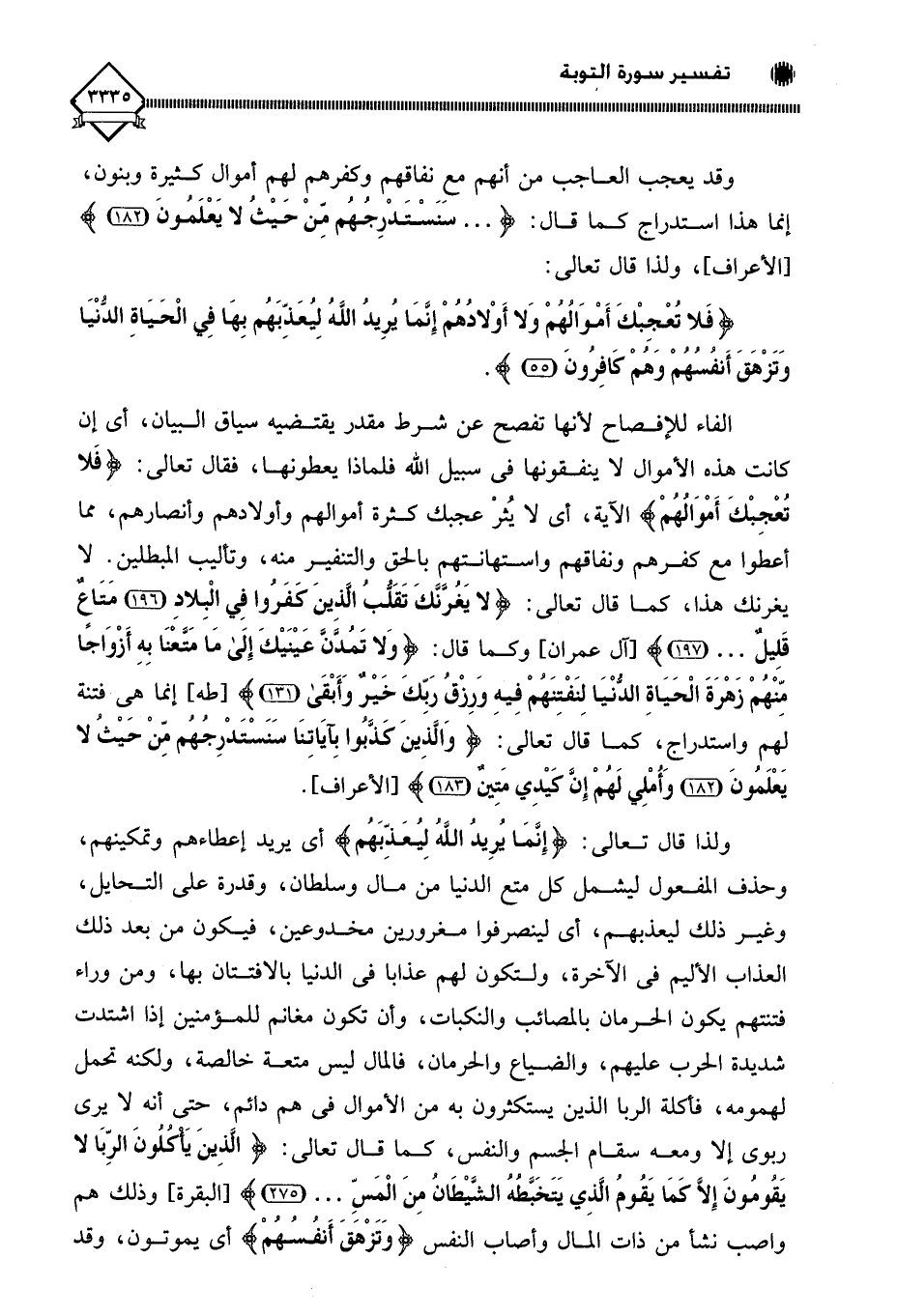 (فَلَا تُعْجِبْكَ أَمْوَالُهُمْ وَلَا أَوْلَادُهُمْ إِنَّمَا يُرِيدُ اللَّهُ لِيُعَذِّبَهُمْ بِهَا فِي الْحَيَاةِ الدُّنْيَا وَتَزْهَقَ أَنْفُسُهُمْ وَهُمْ كَافِرُونَ (55)